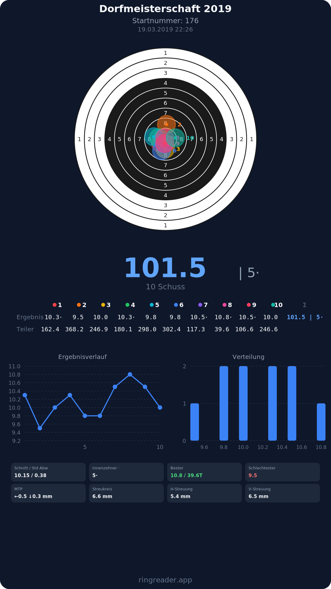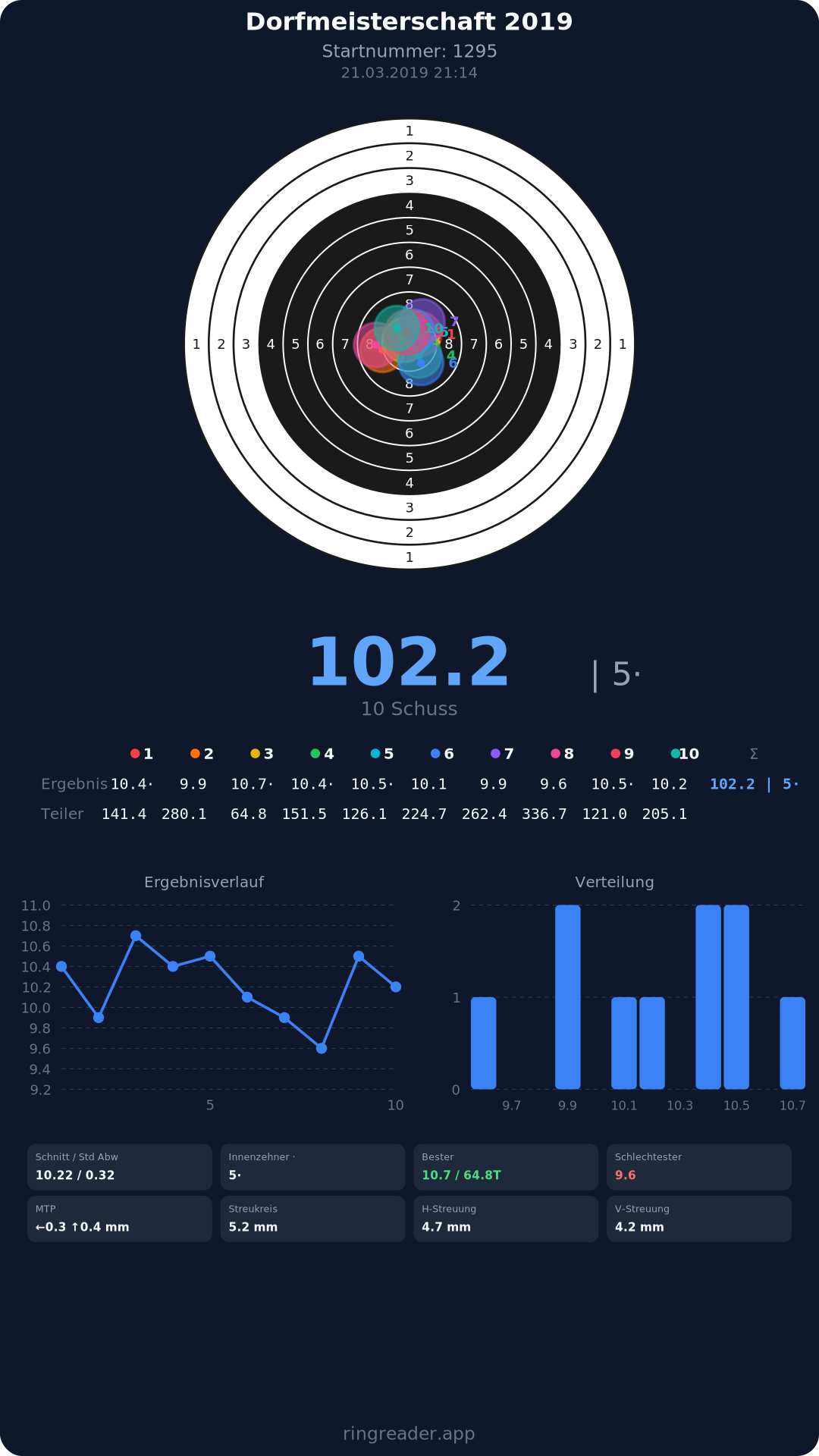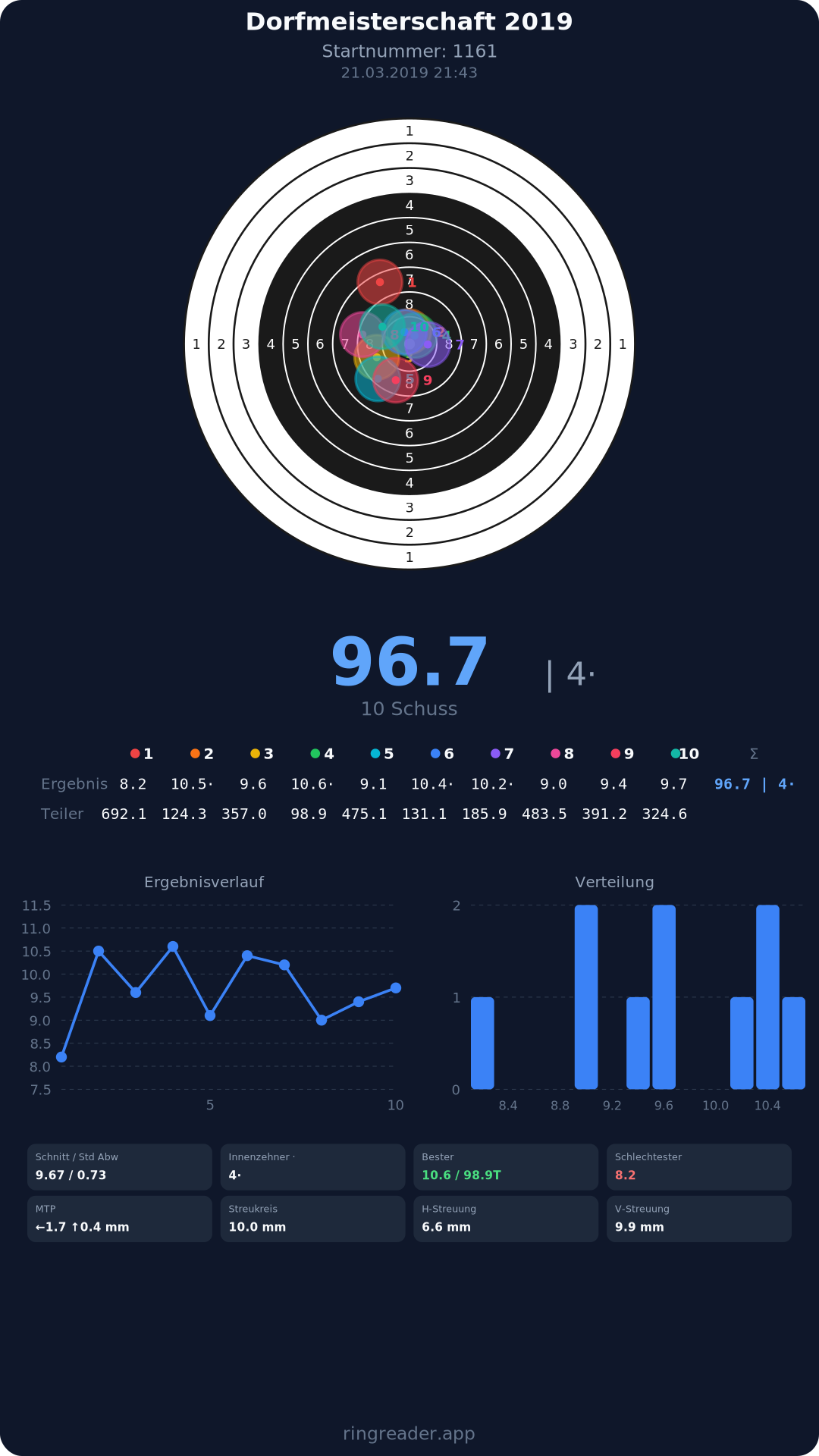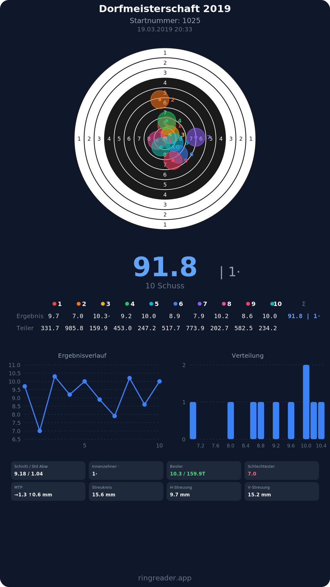 | 10 | 1025 | 97.2 Ringe |