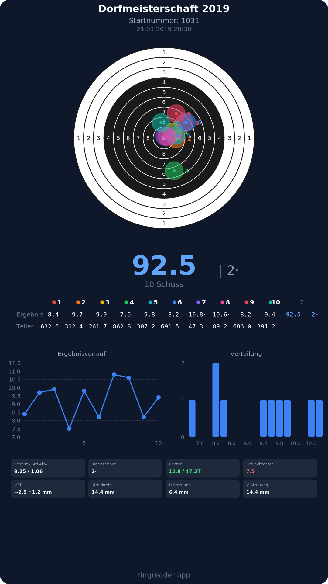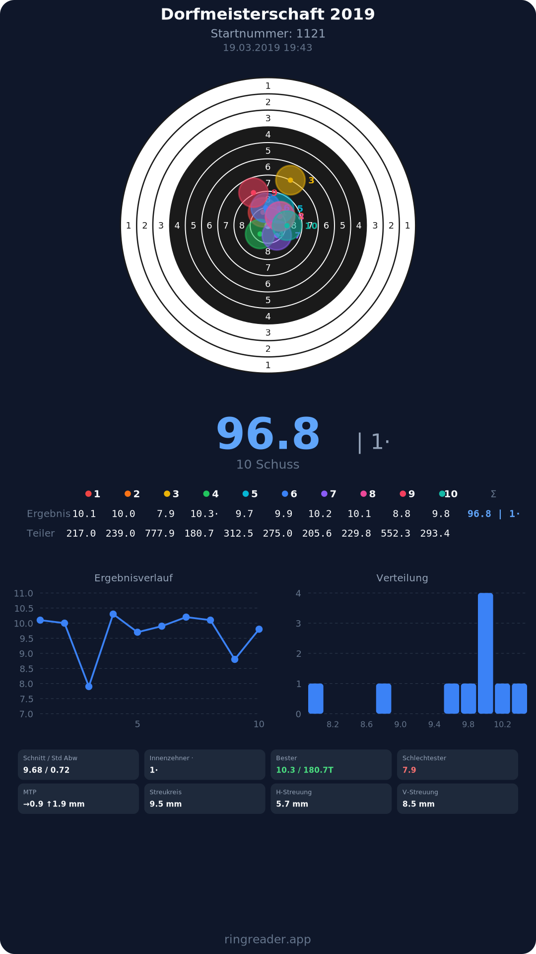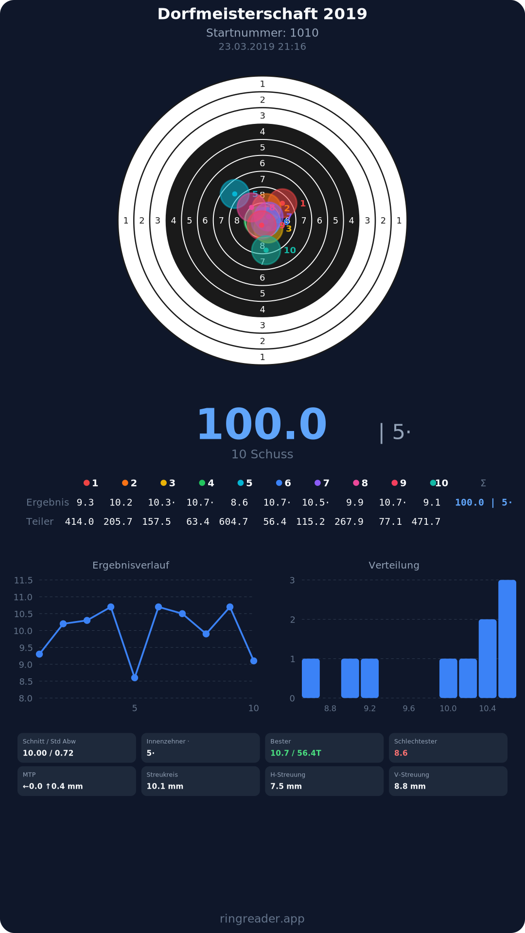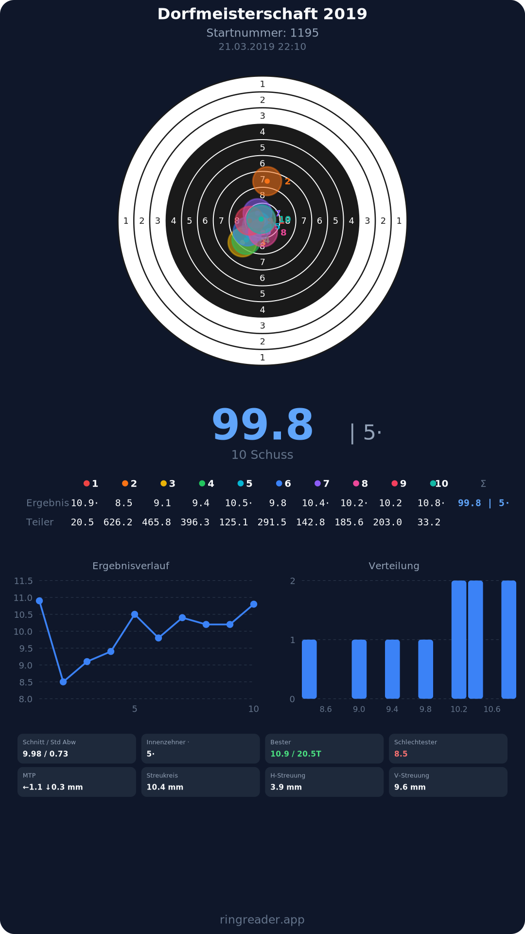 | 10 | 1025 | 97.2 Ringe |