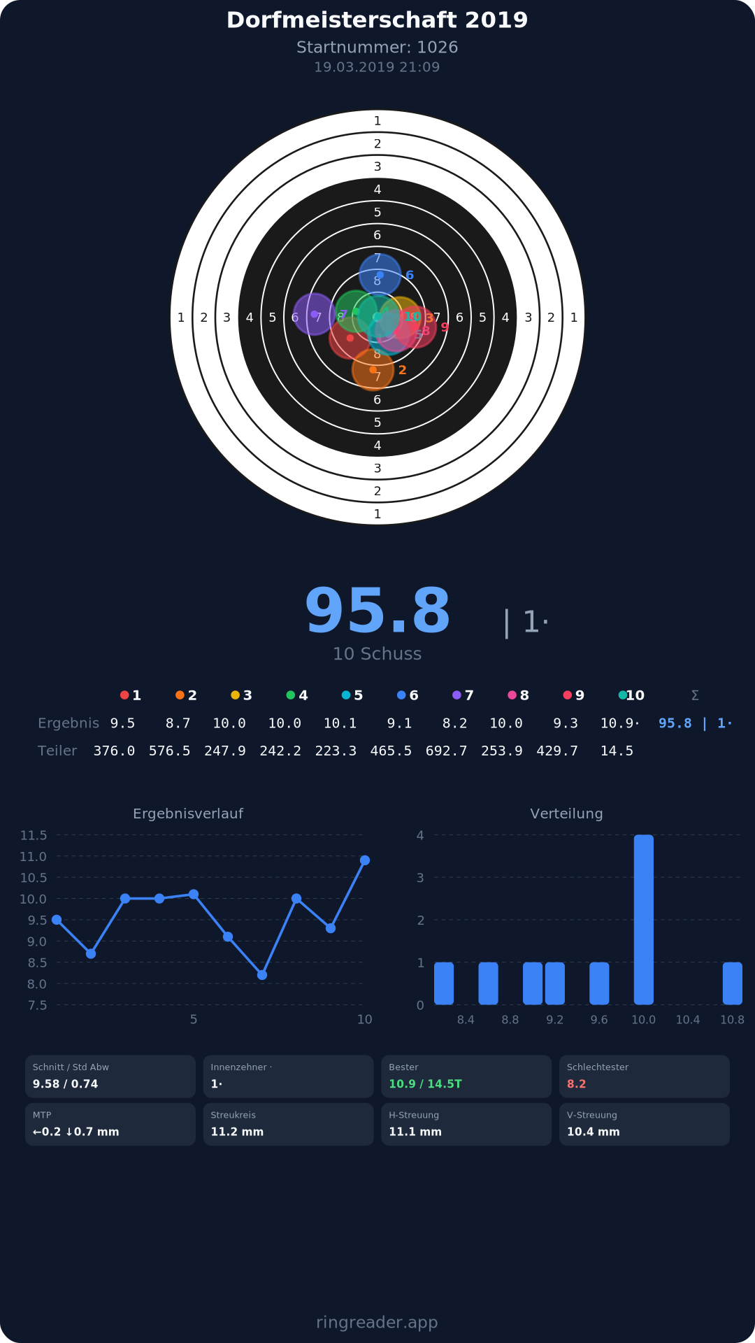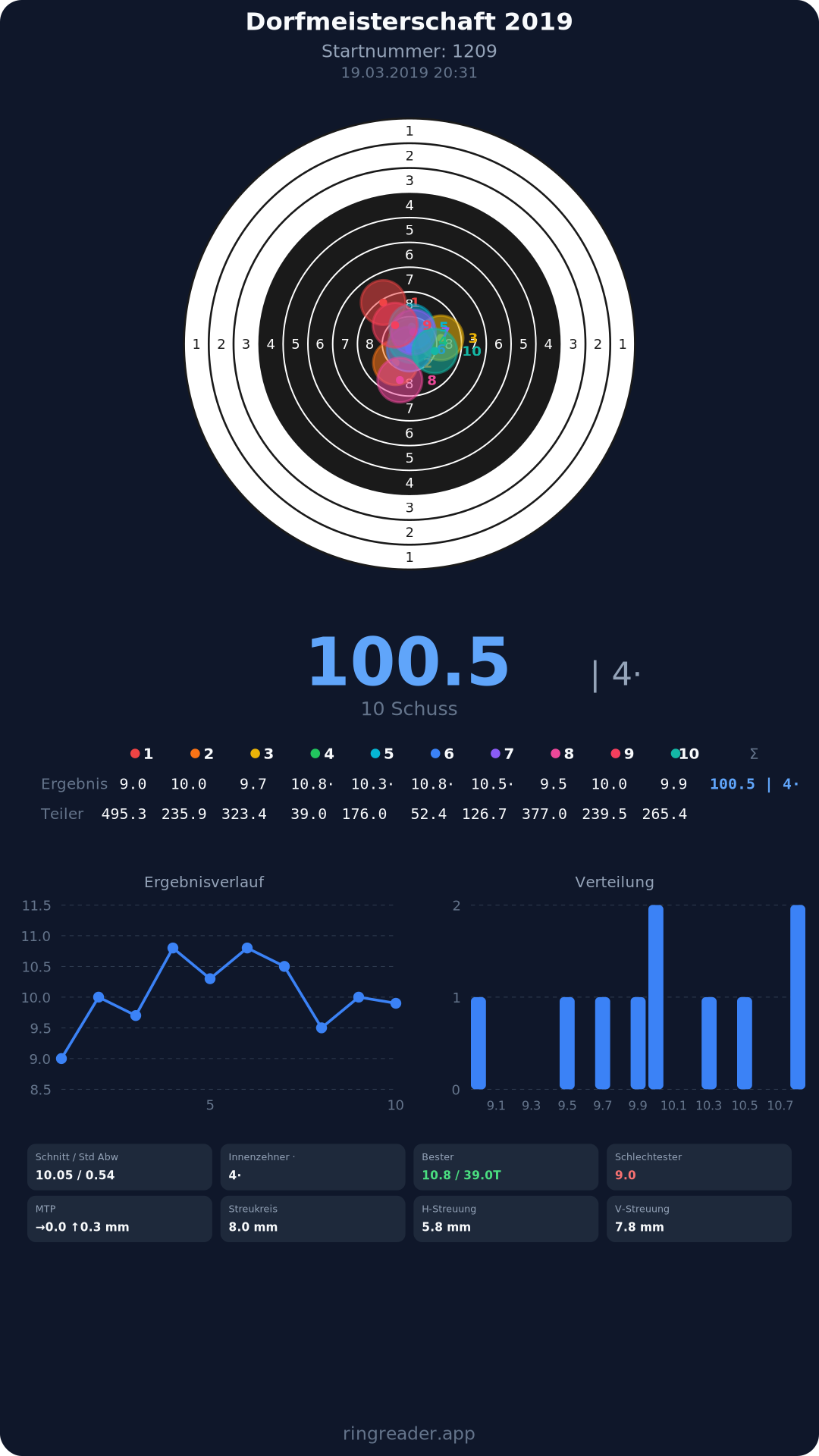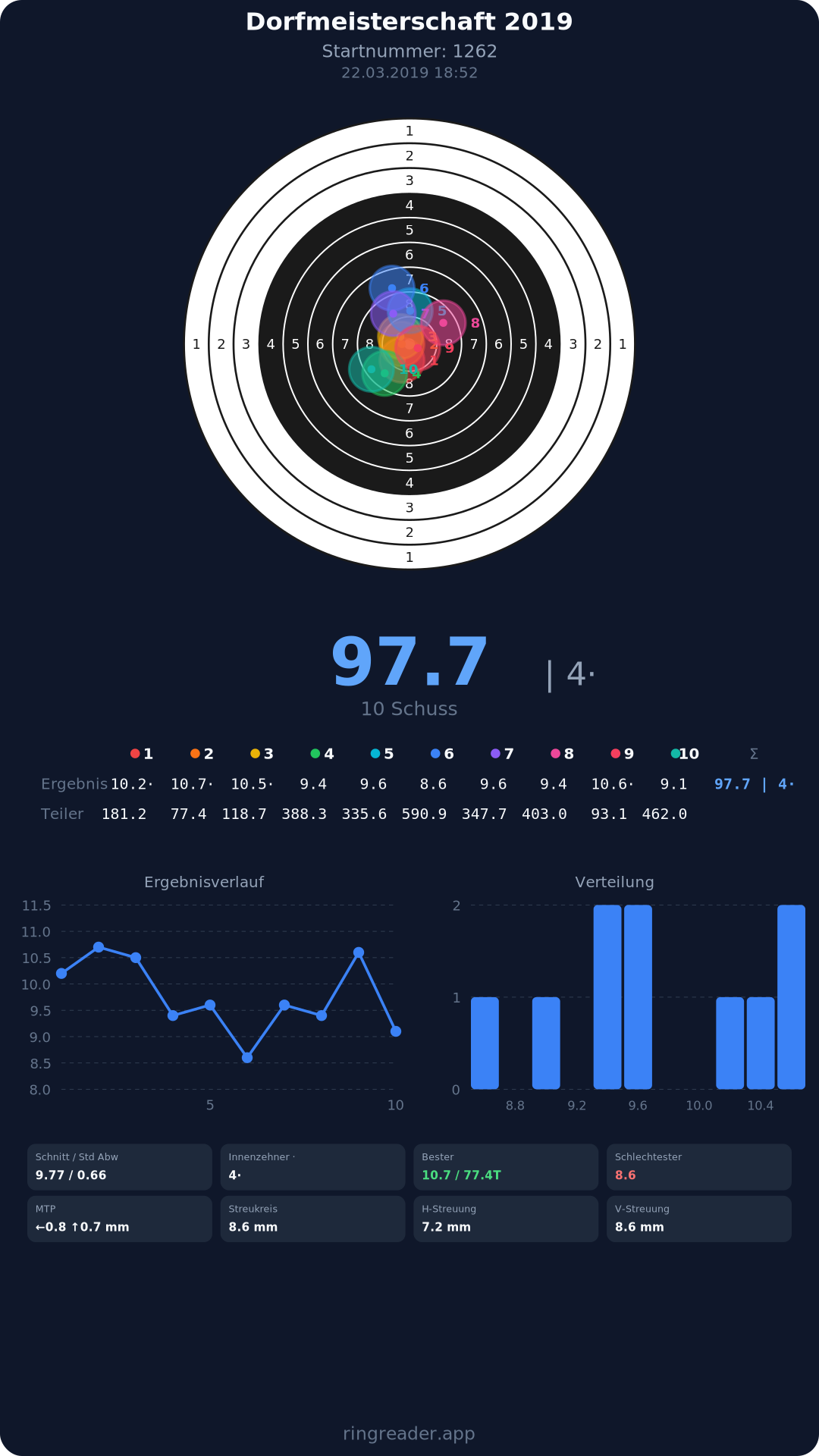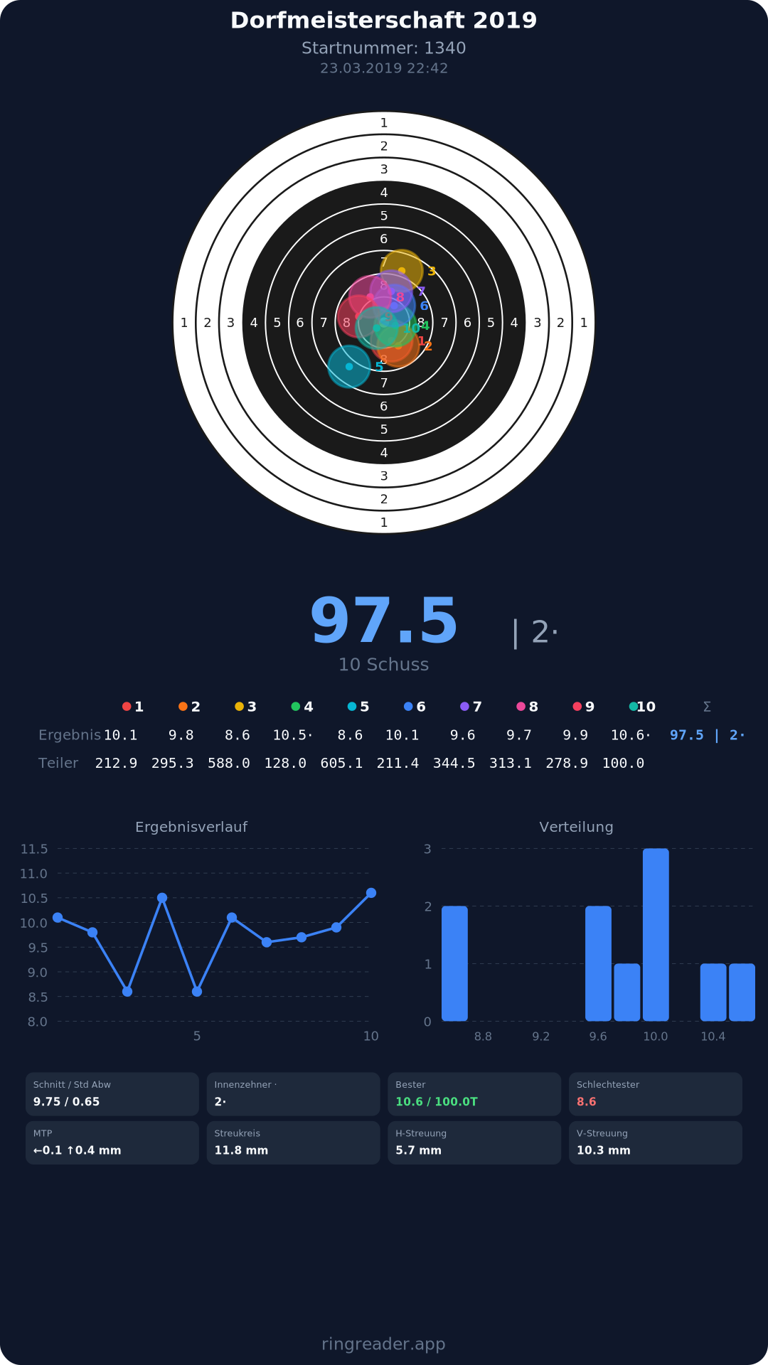 | 10 | 1025 | 97.2 Ringe |