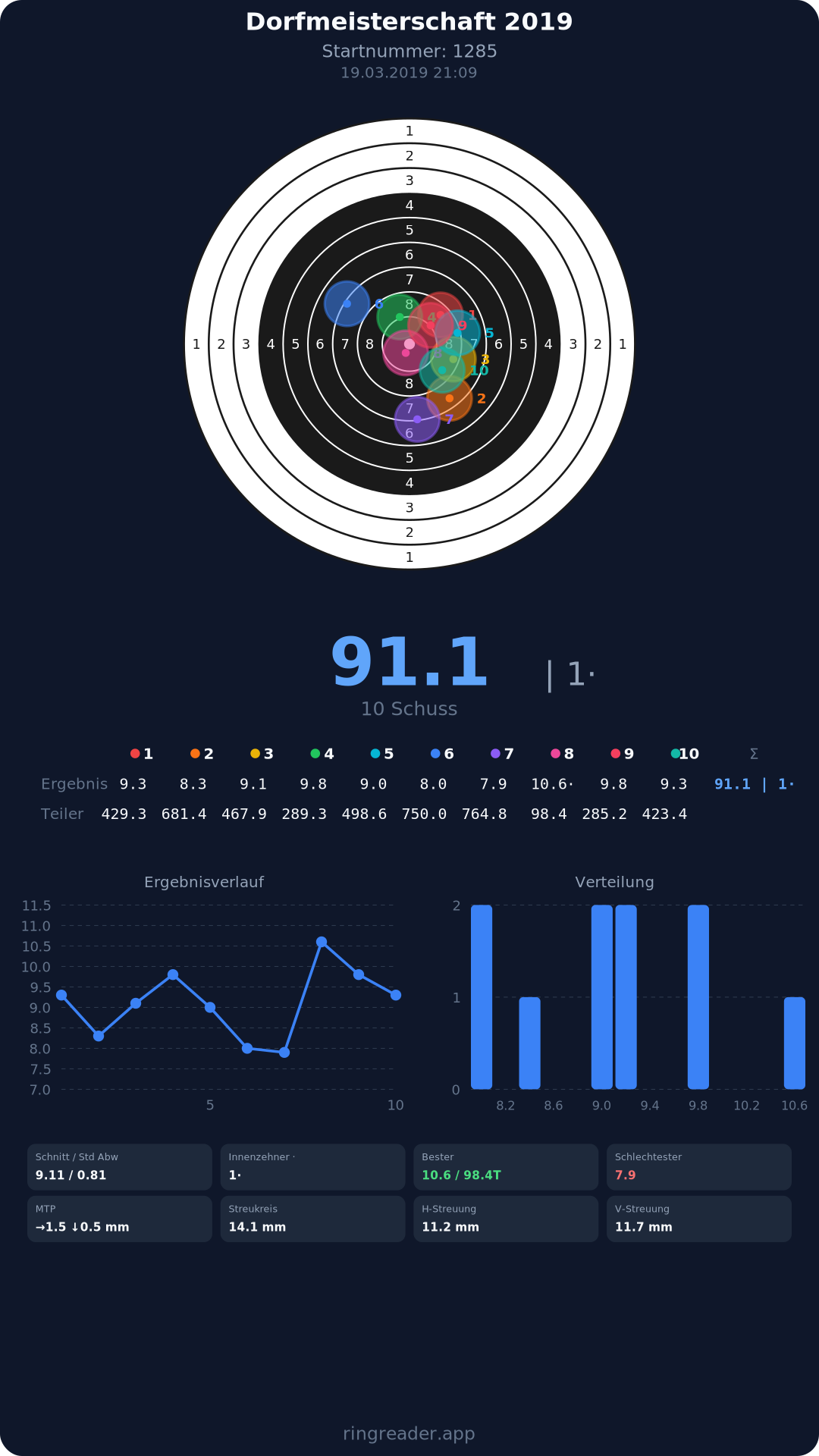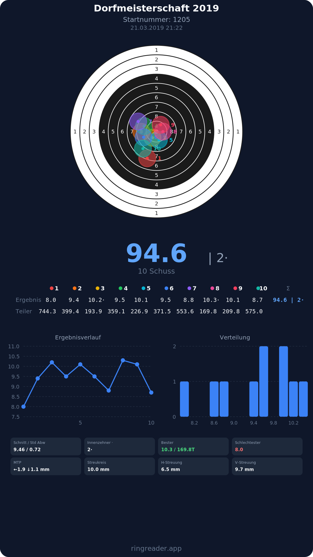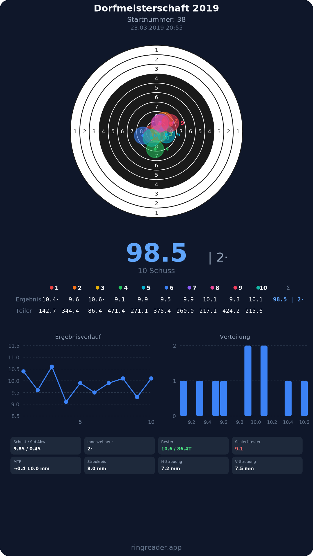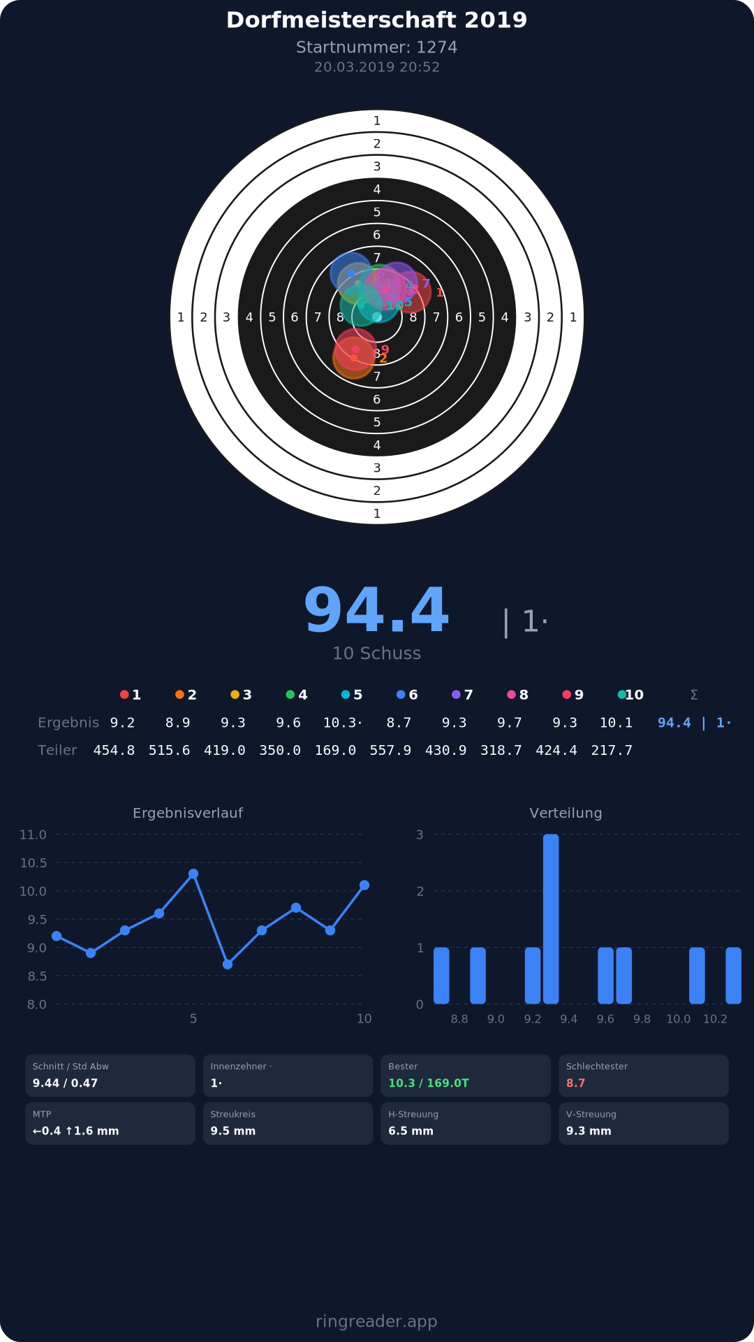 | 10 | 1274 | 94.6 Ringe |