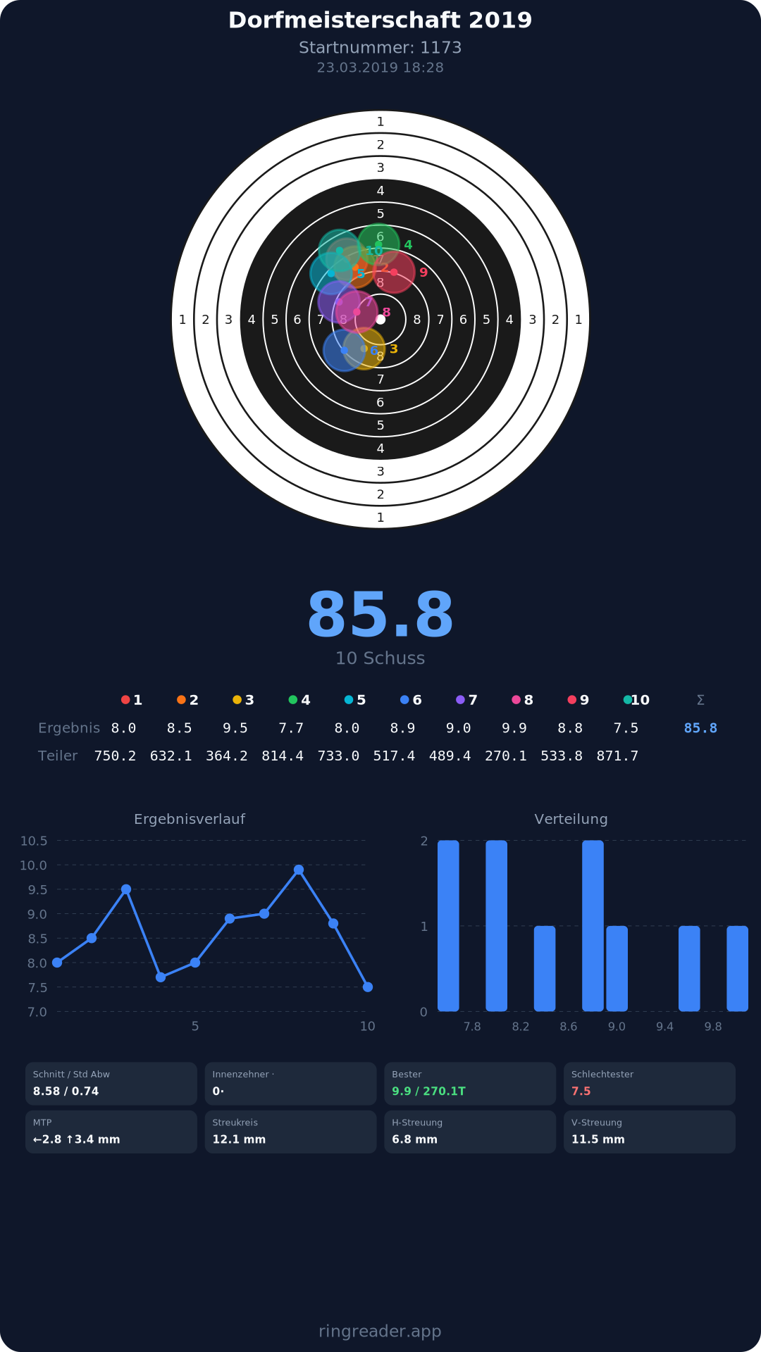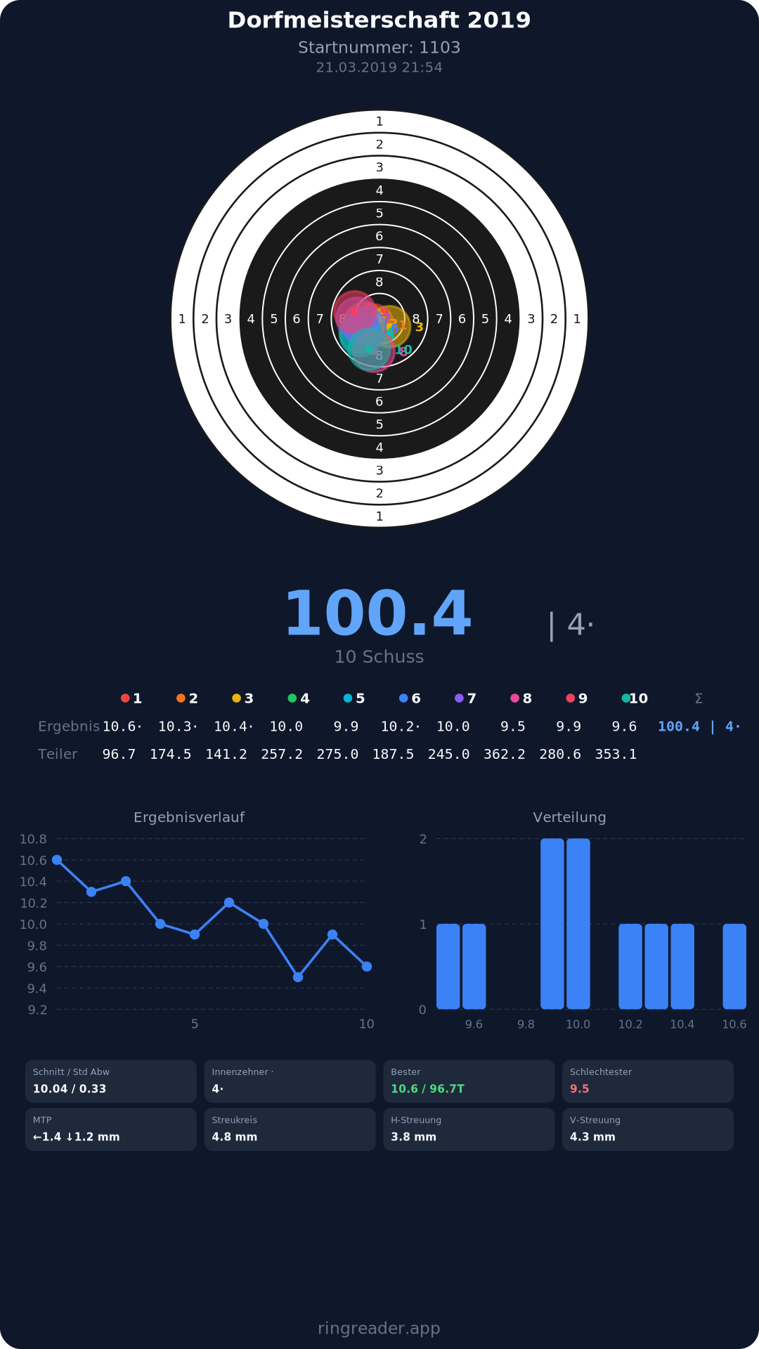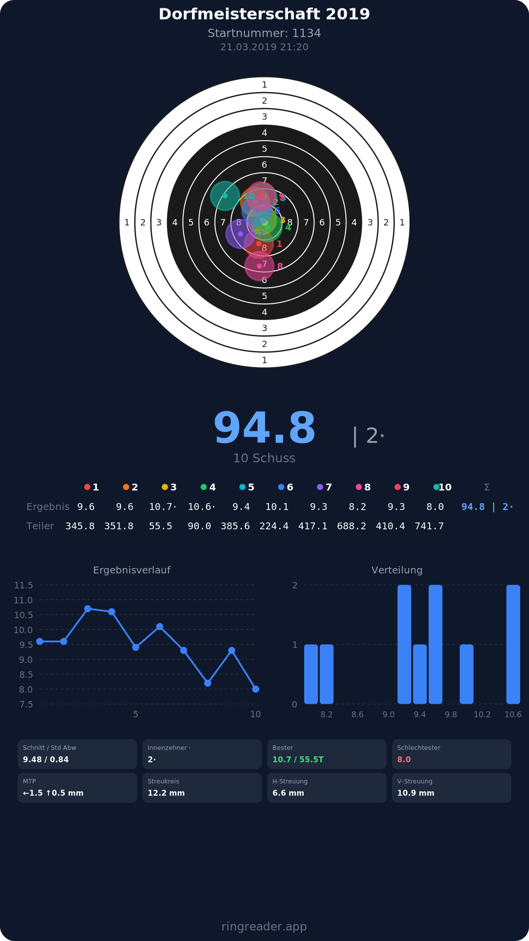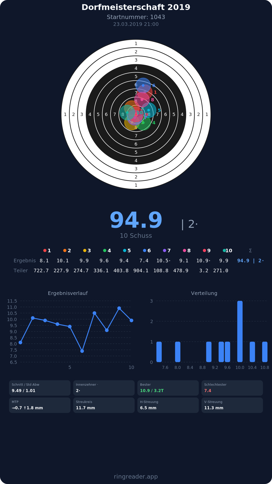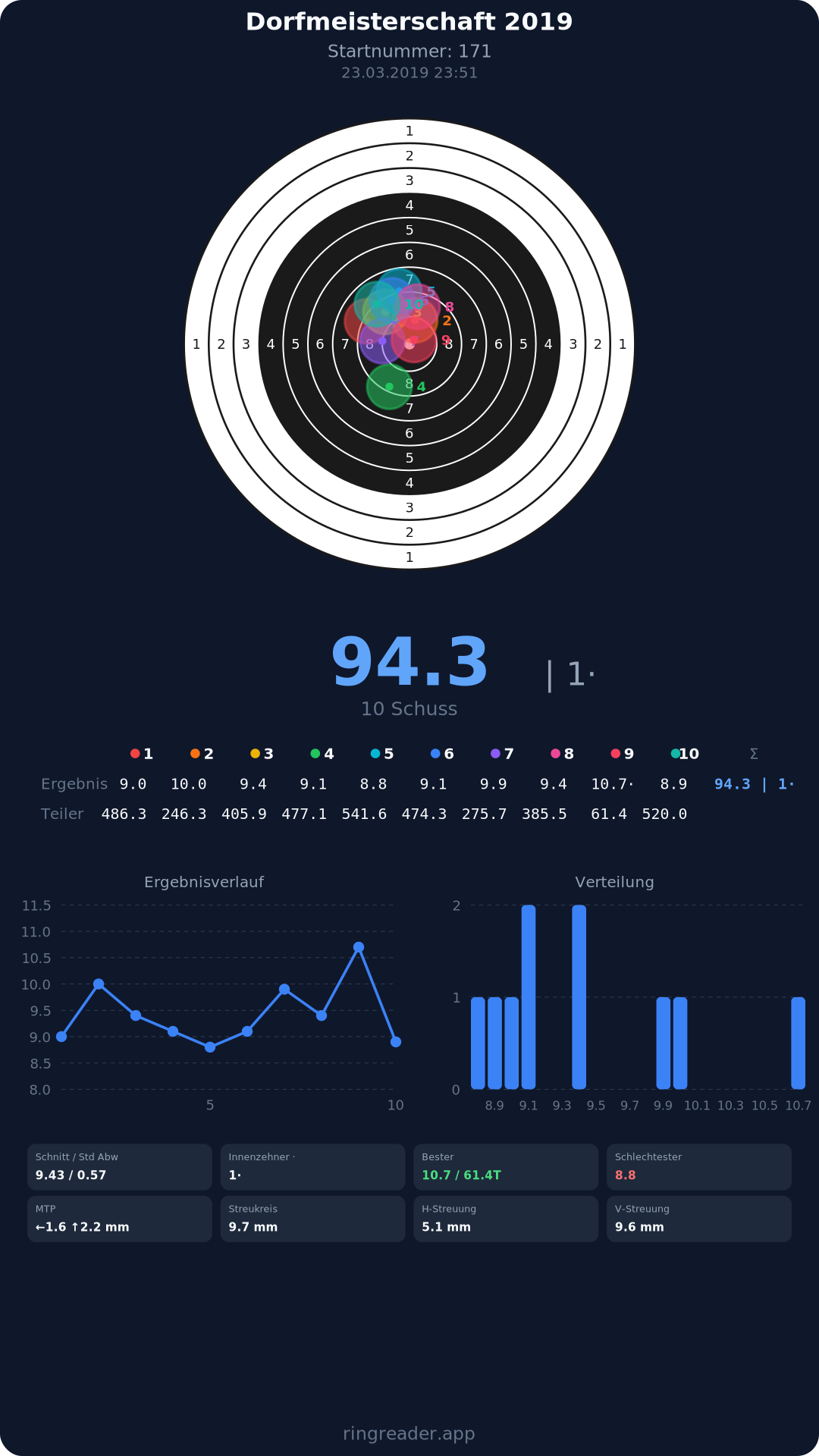 | 10 | 1274 | 94.6 Ringe |