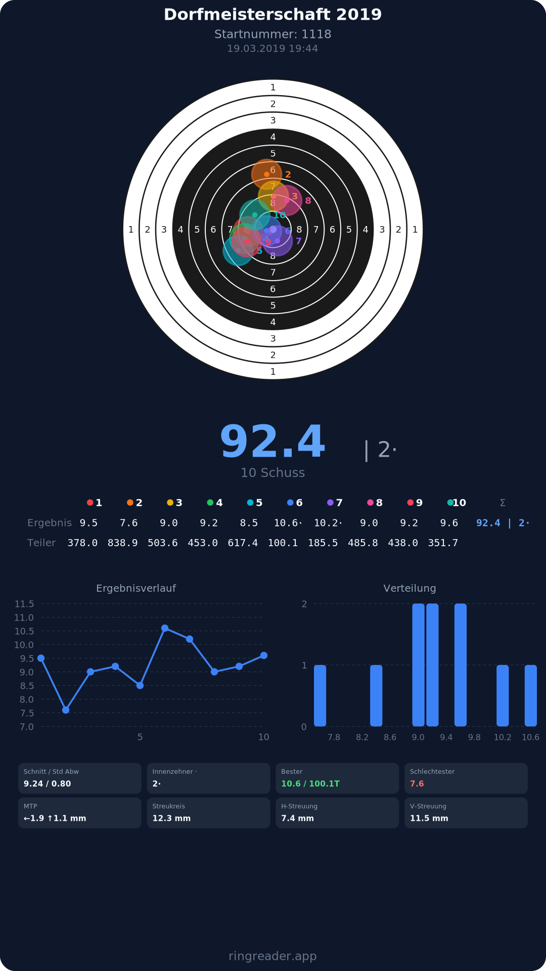 | 12 | 1360 | 92.4 Ringe |