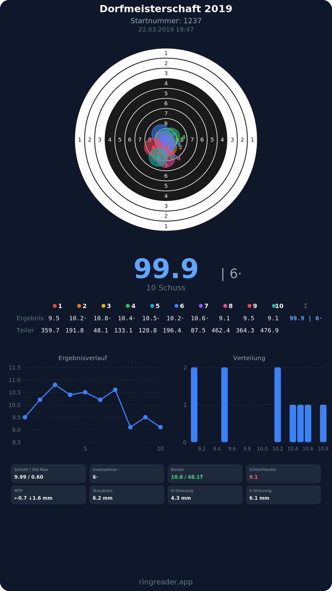 | 6 | 1000 | 99.2 Ringe |