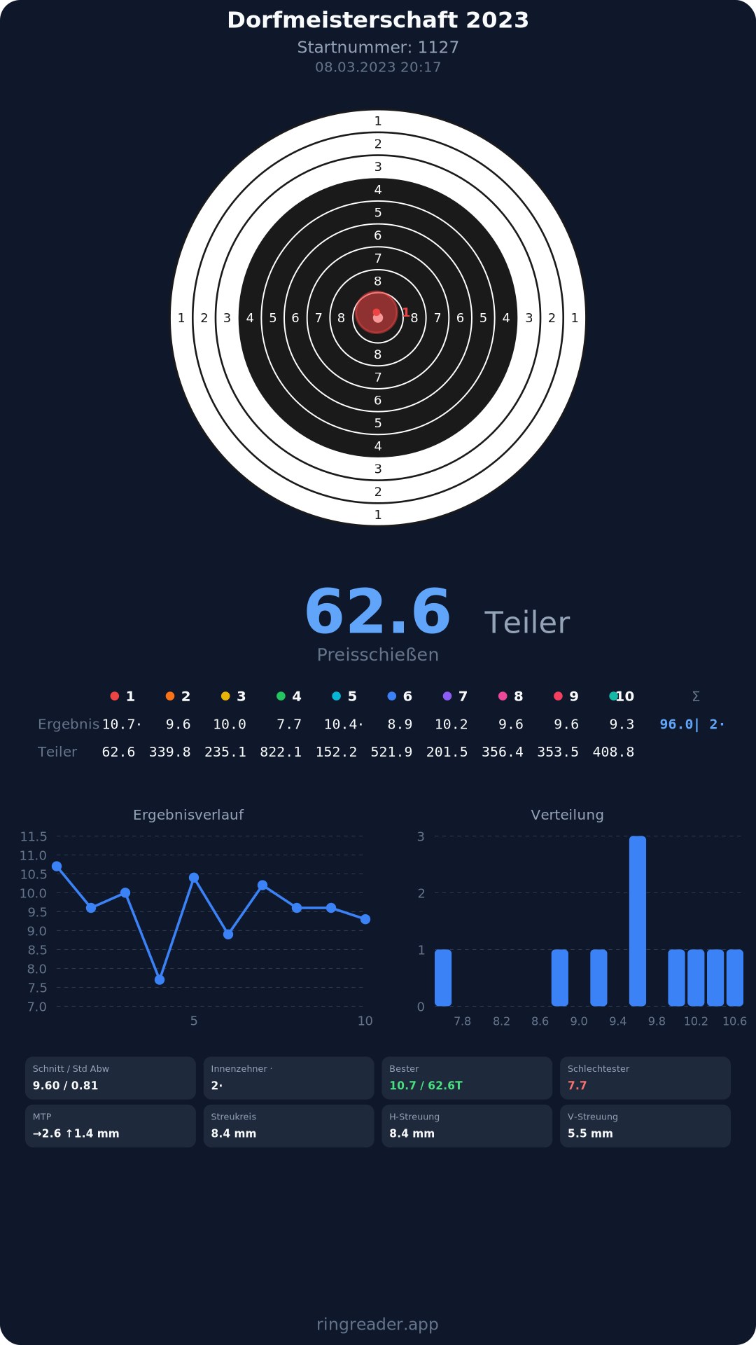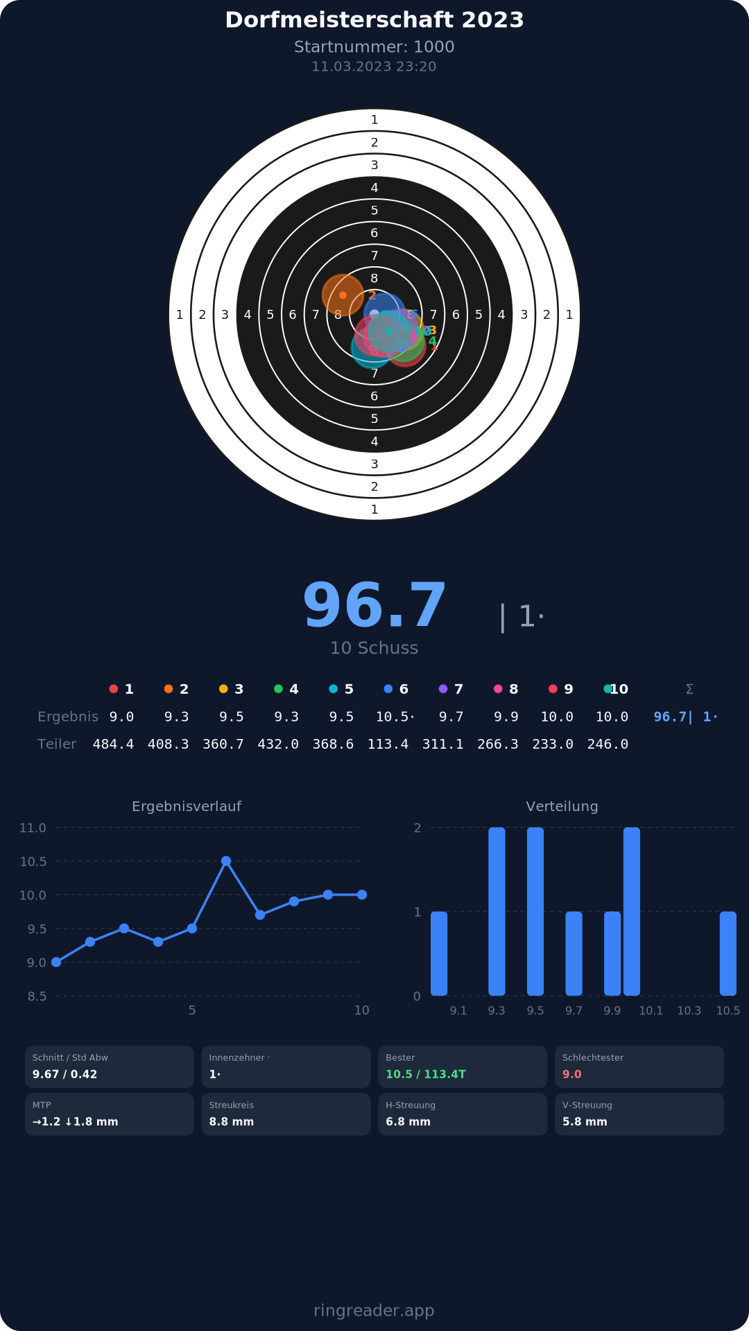 | 8 | 1000 | 96.7 Ringe |
