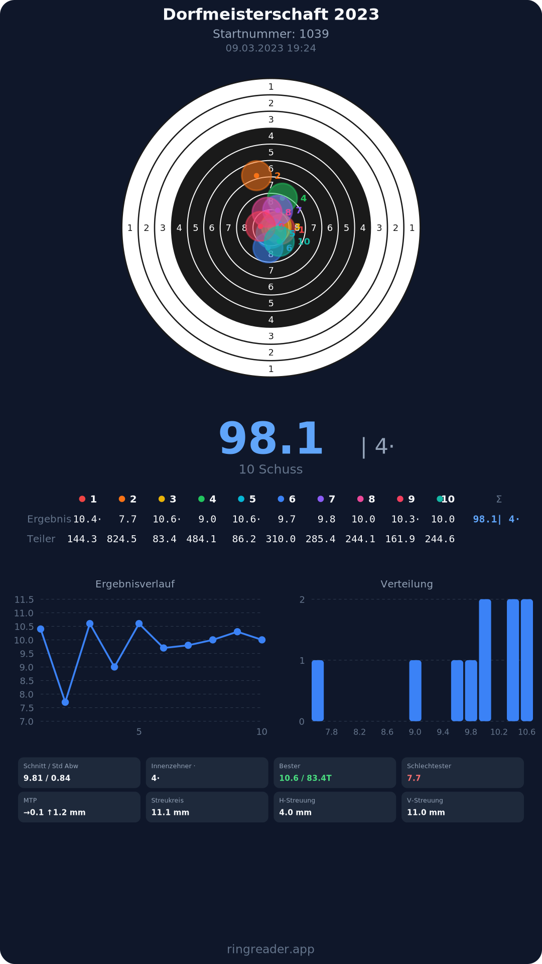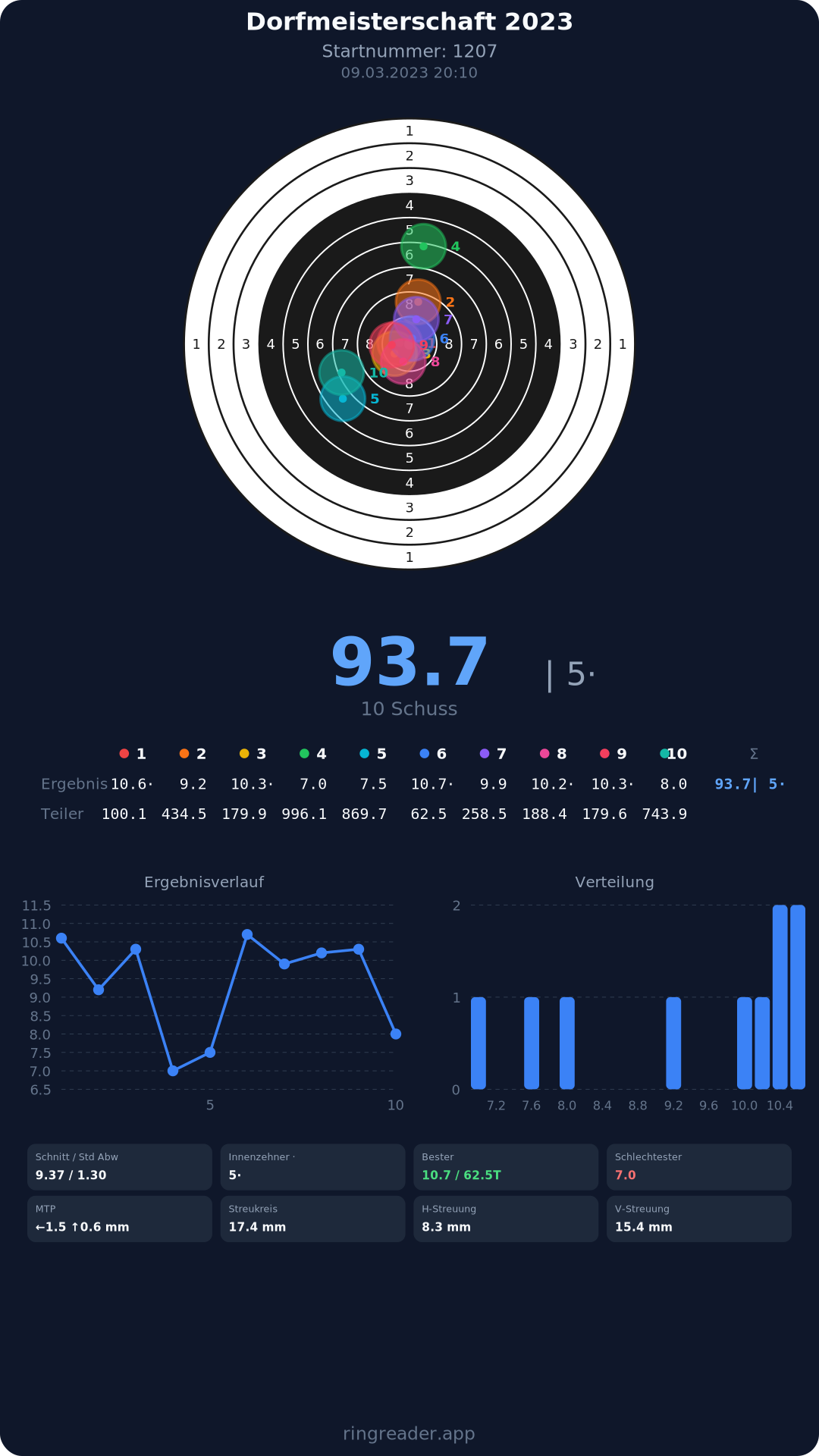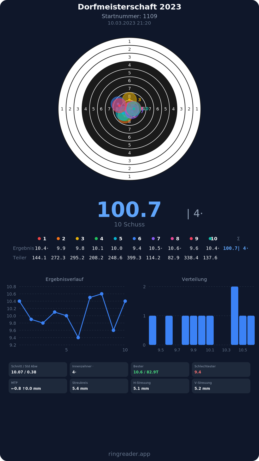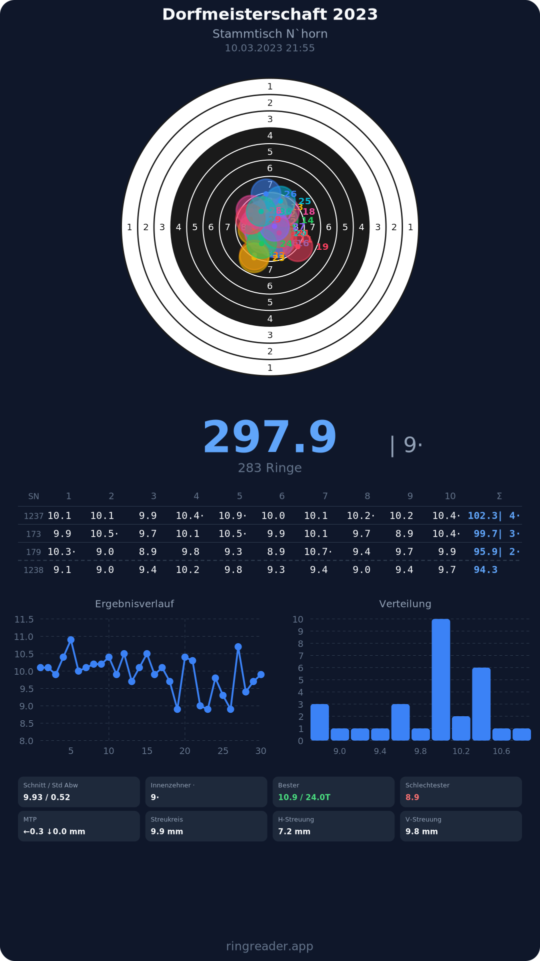 | 10 | 1103 | 97.0 Ringe |