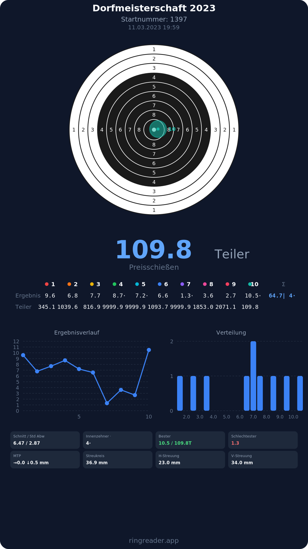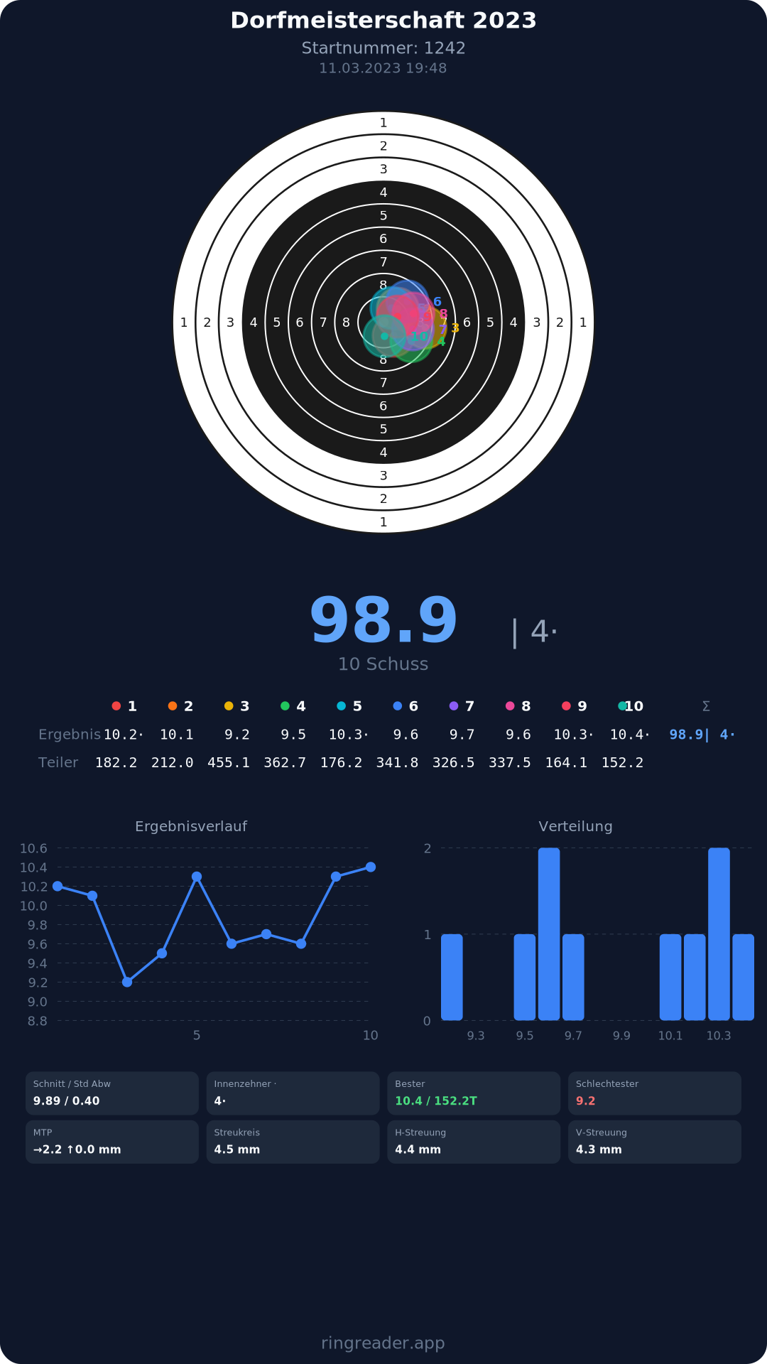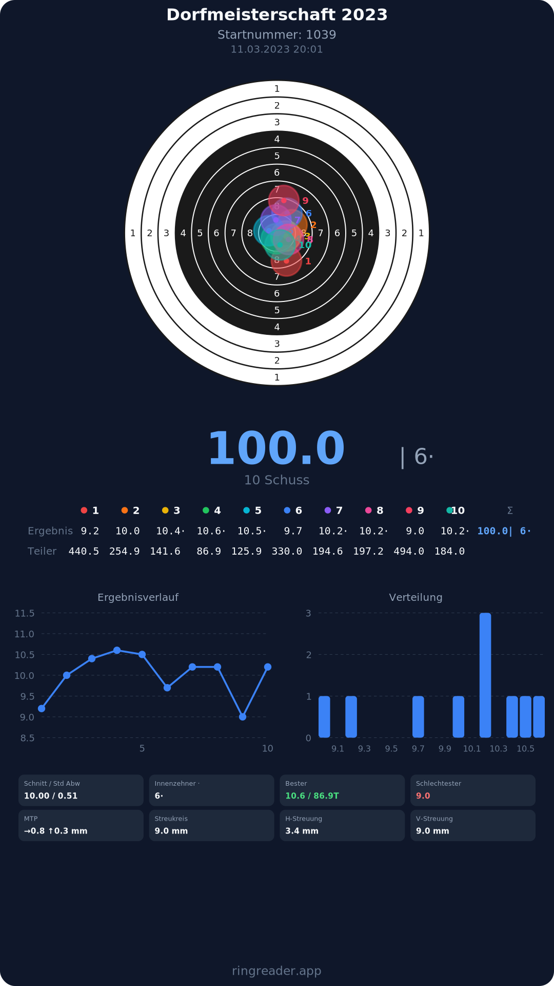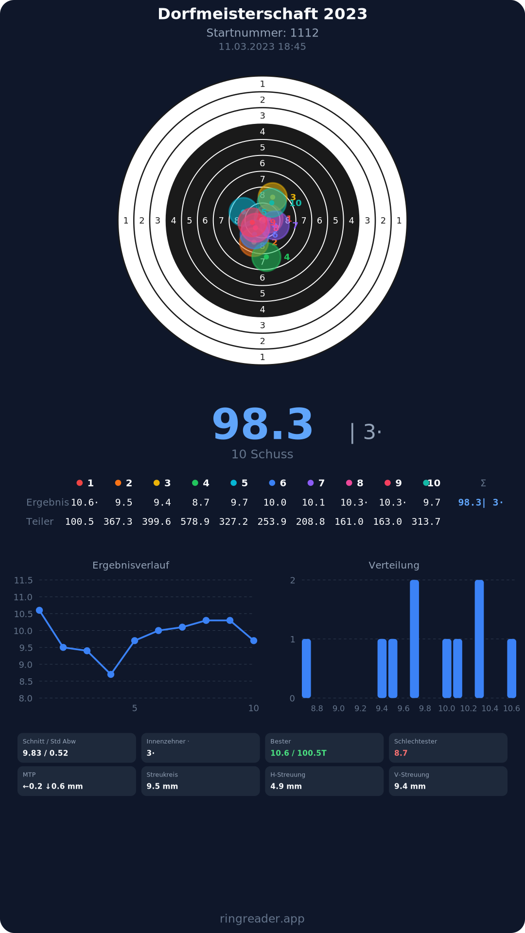 | 10 | 1103 | 97.0 Ringe |