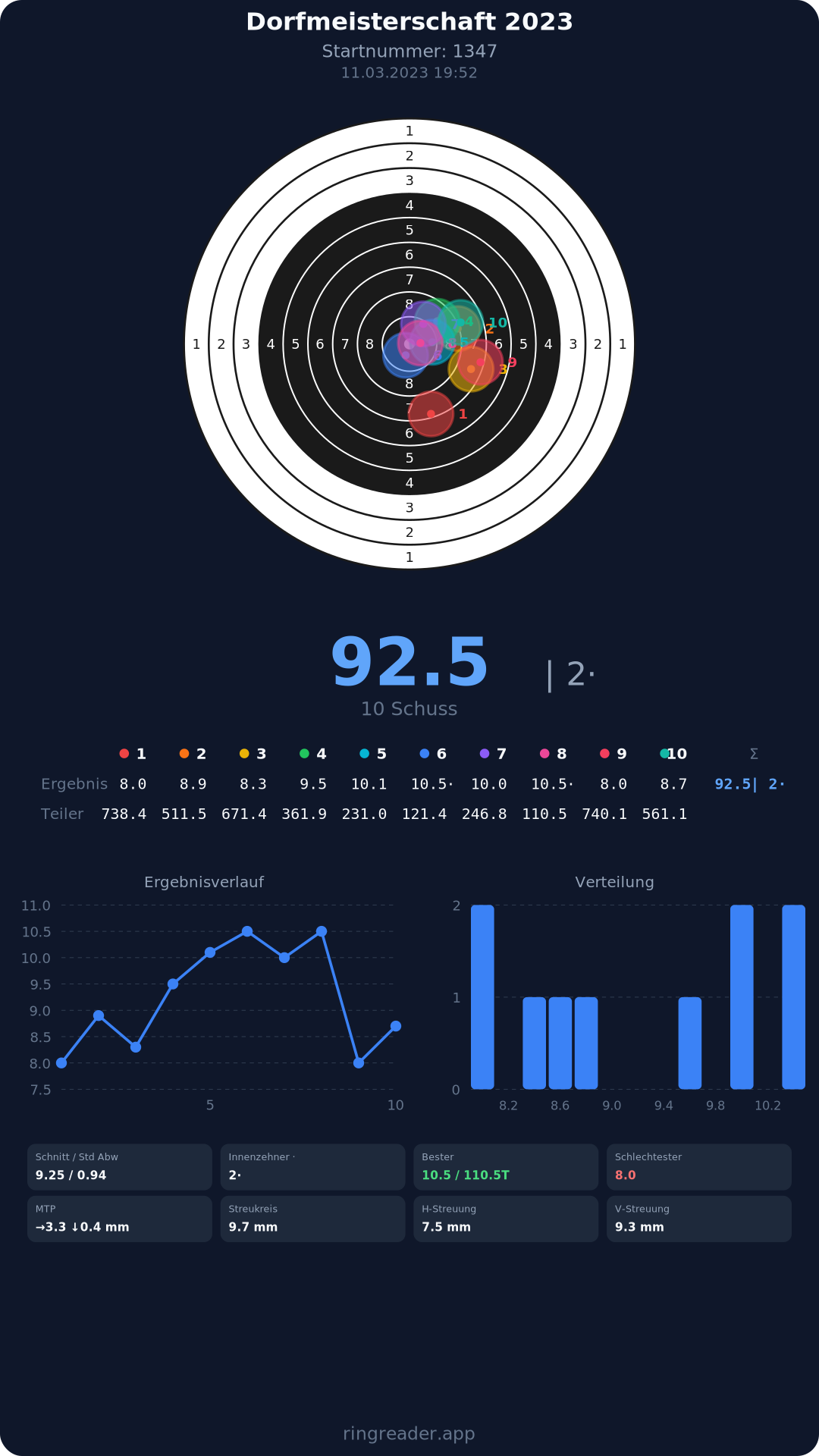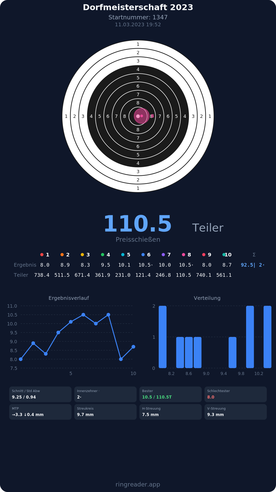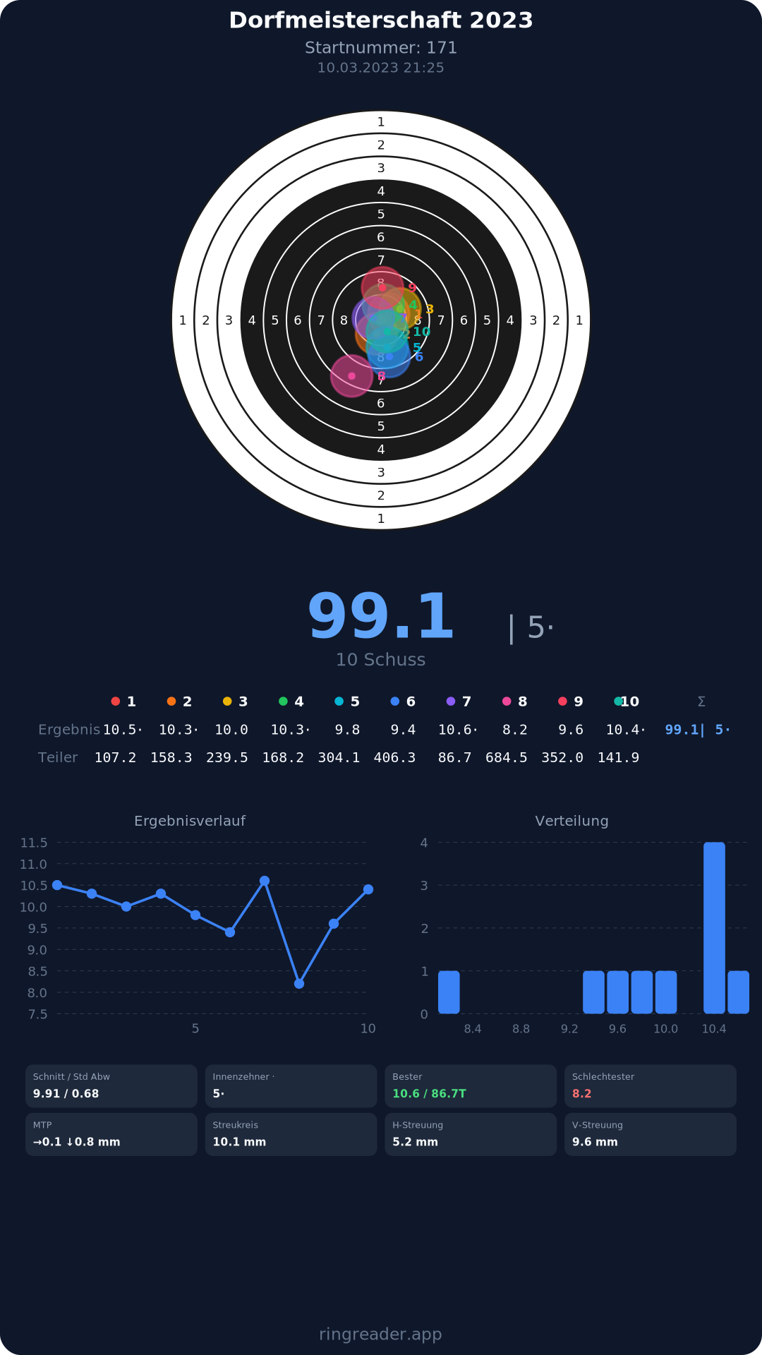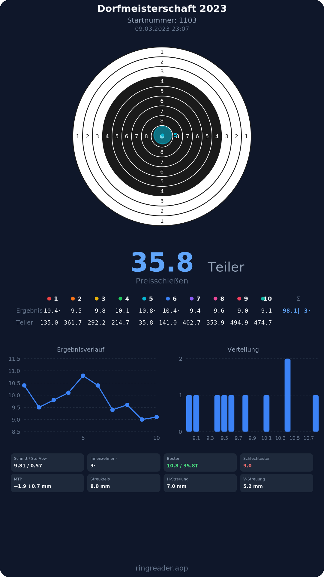 | 10 | 1103 | 97.0 Ringe |