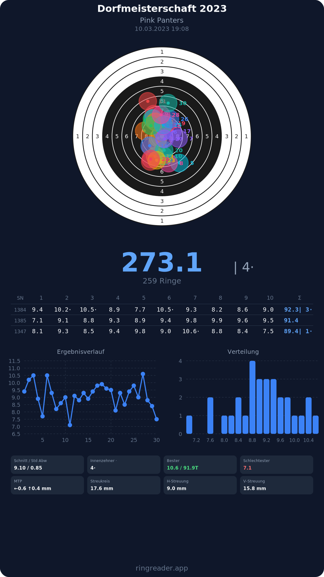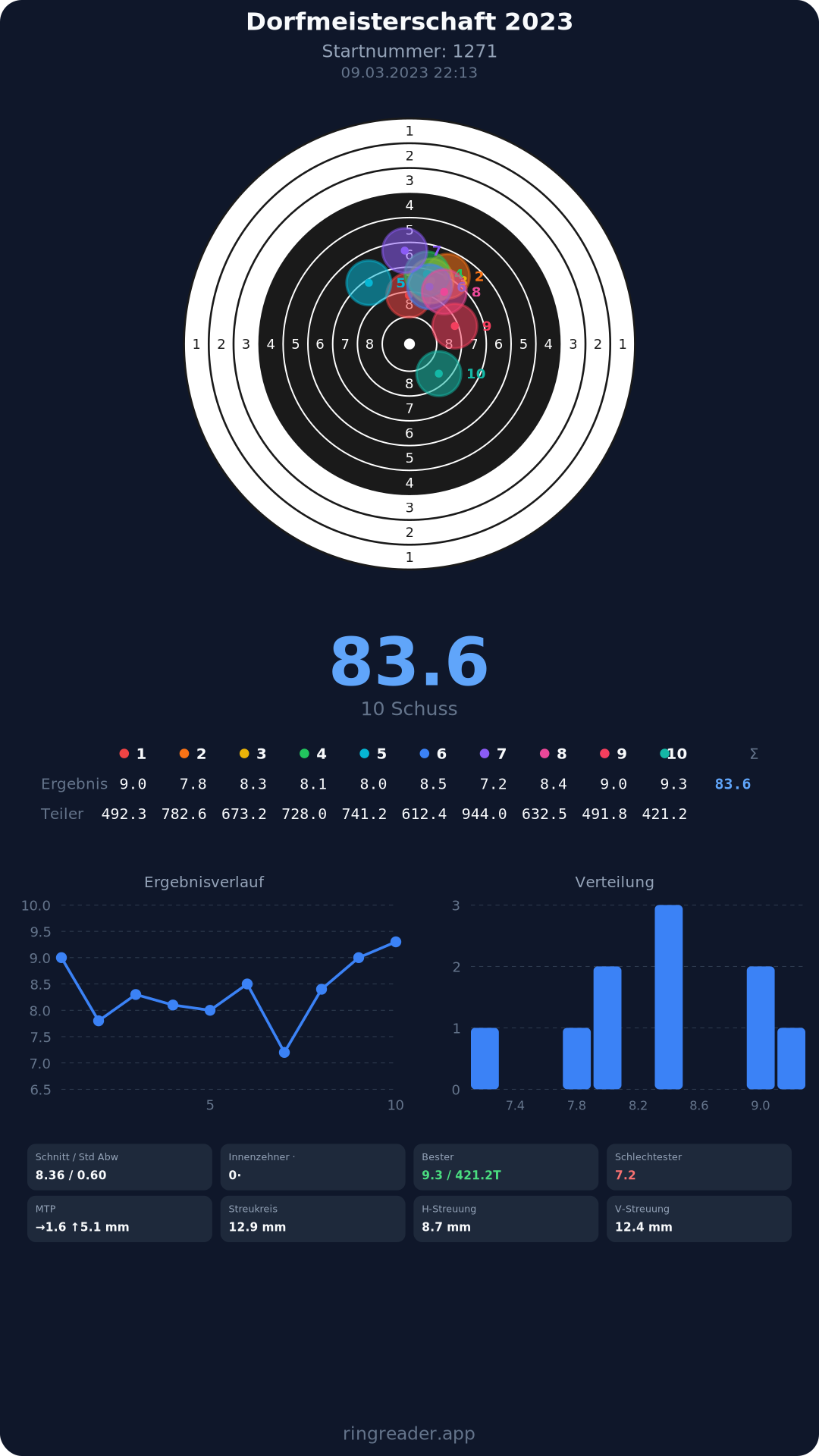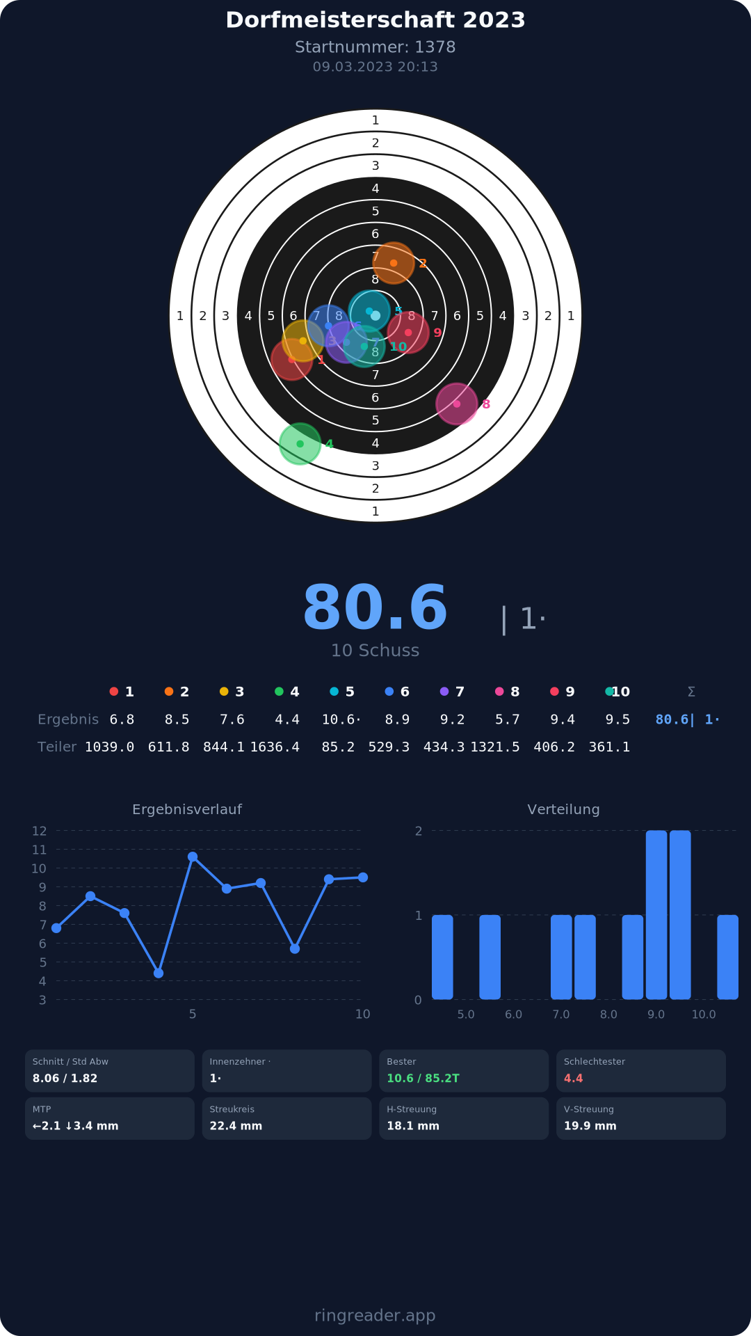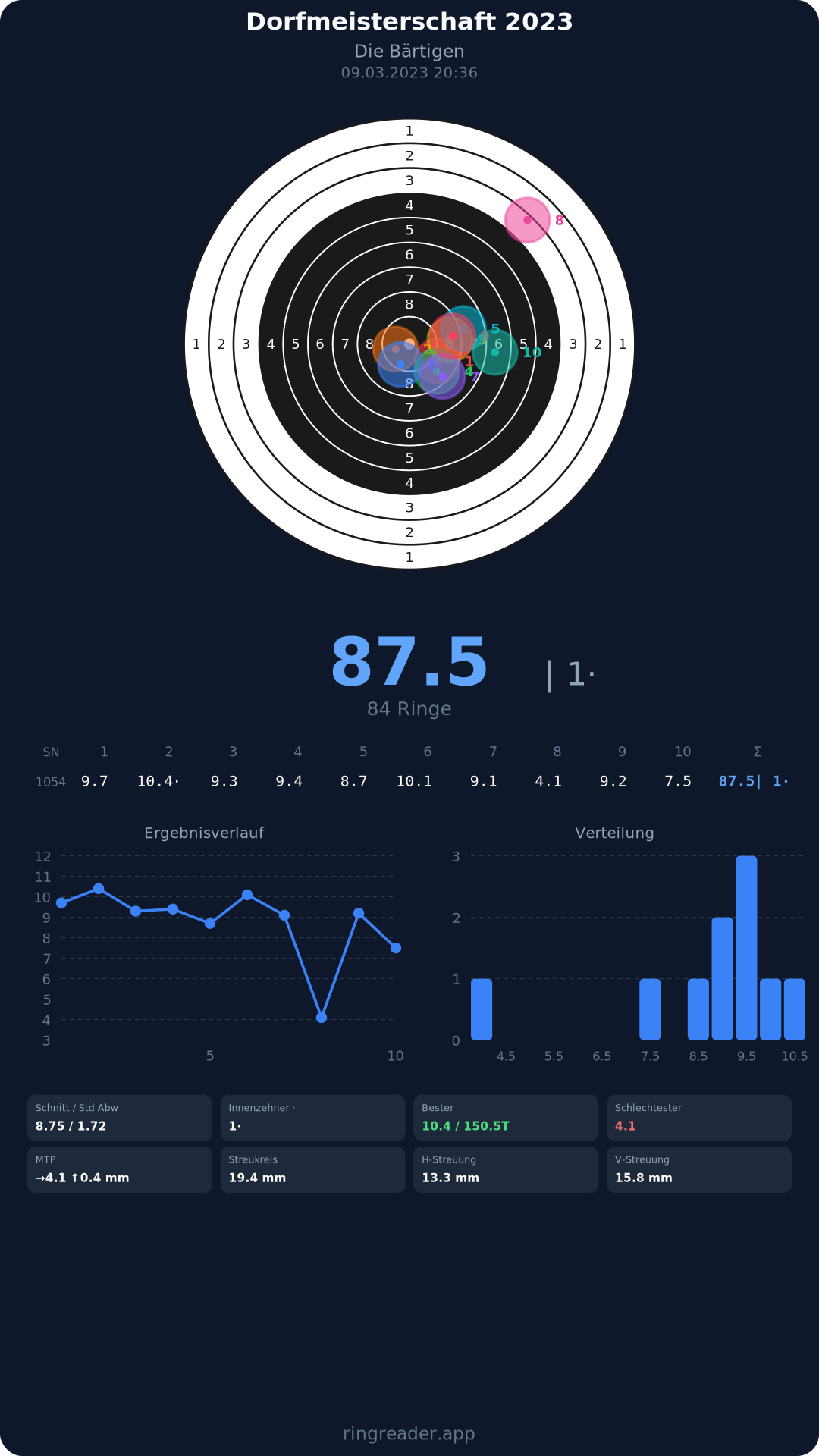 | 8 | 1371 | 86.3 Ringe |