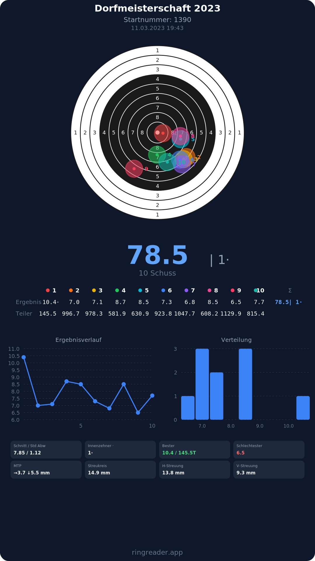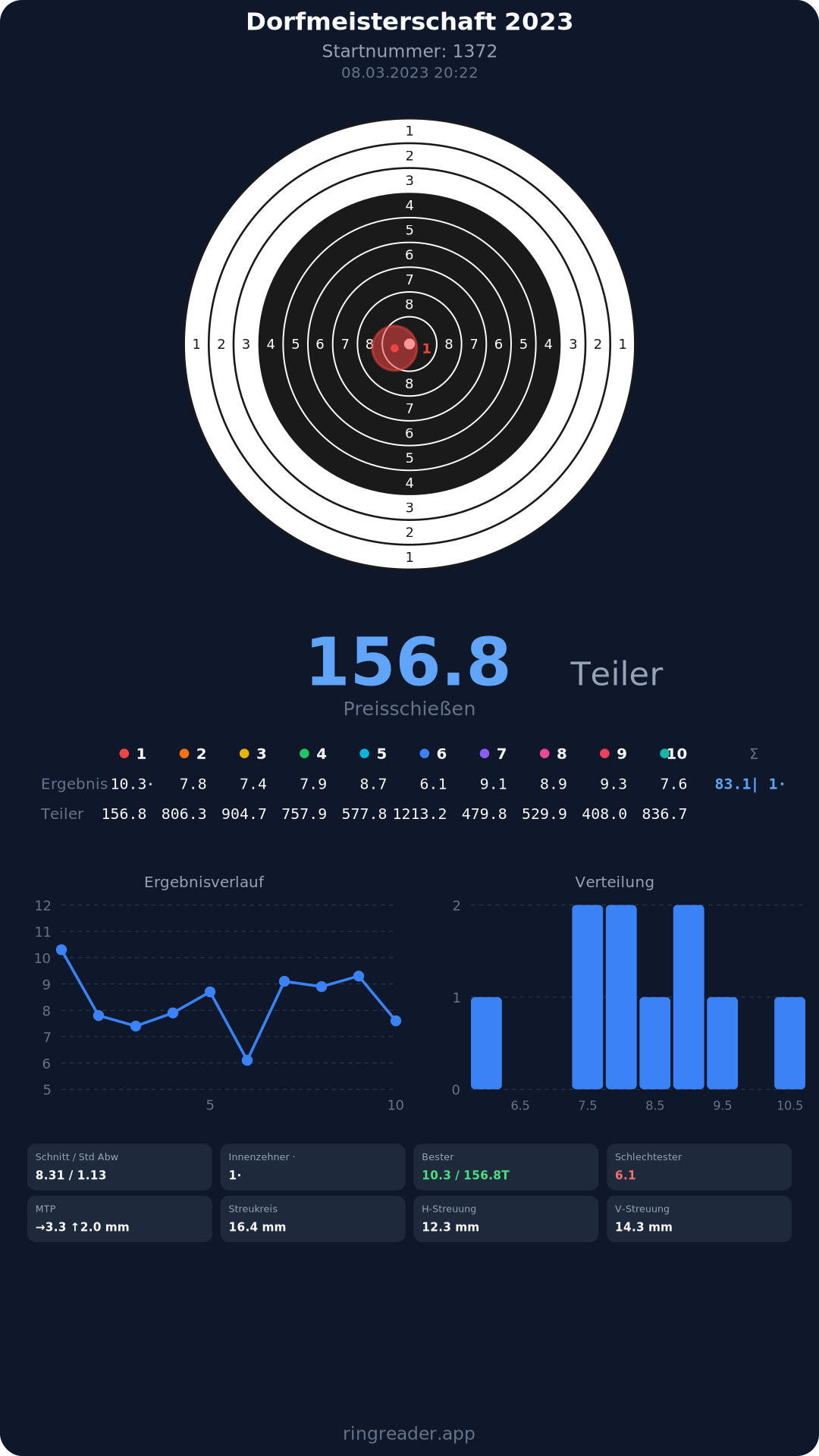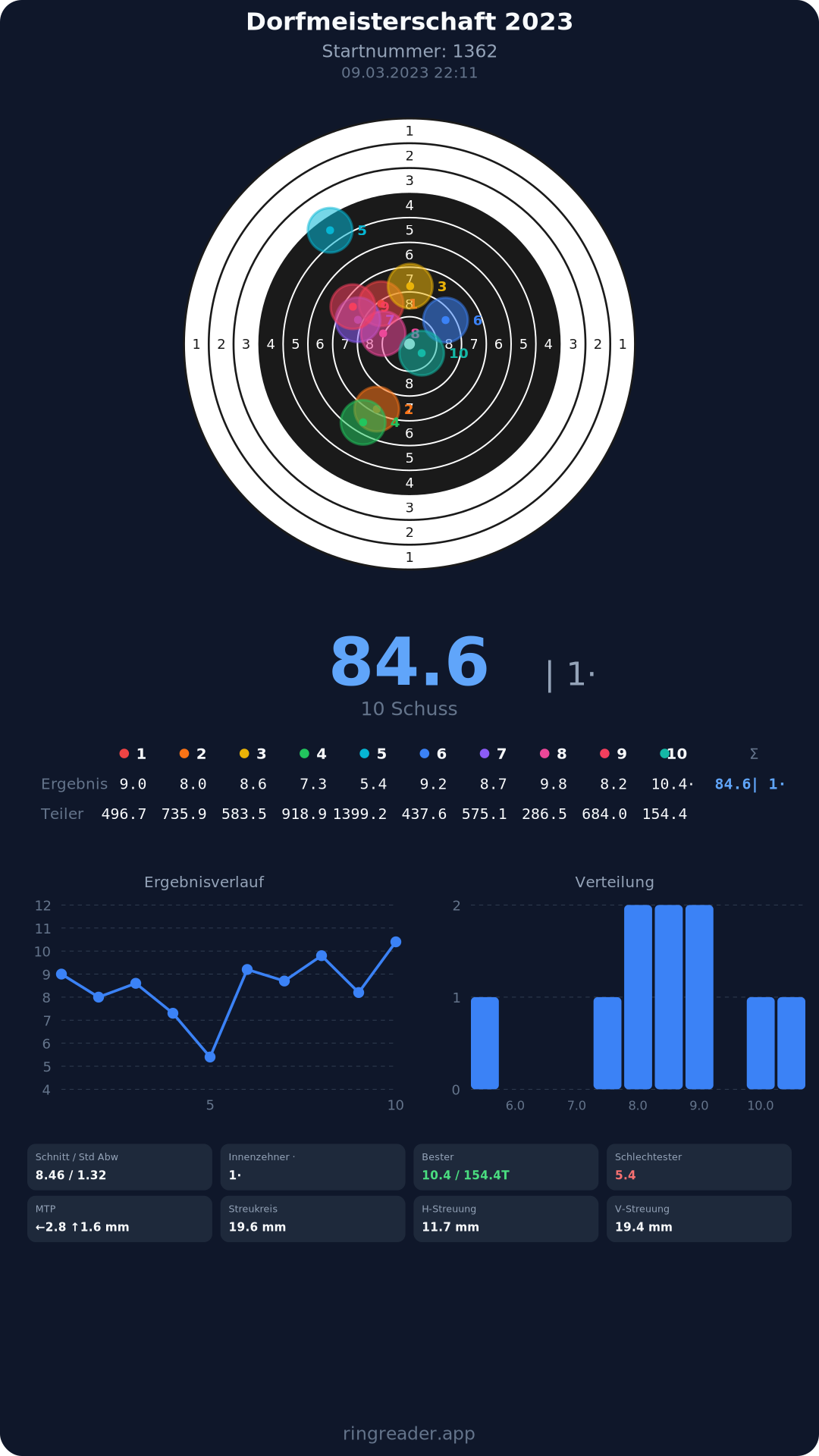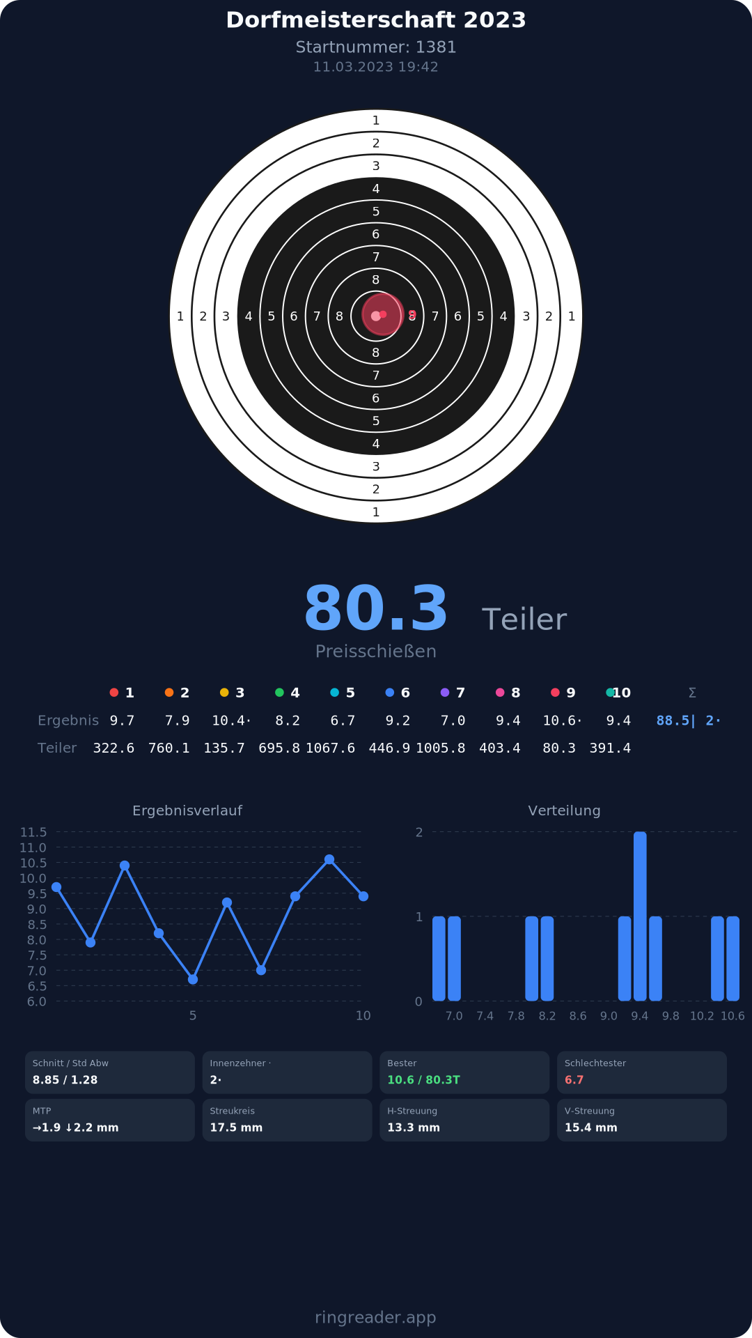 | 8 | 1371 | 86.3 Ringe |
