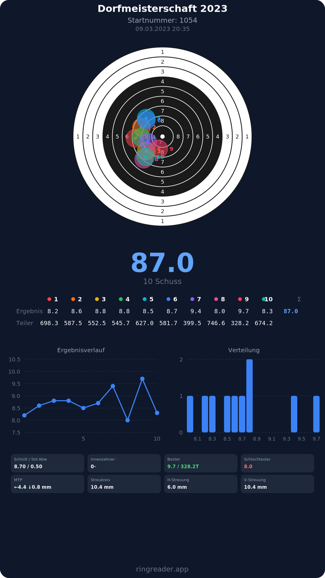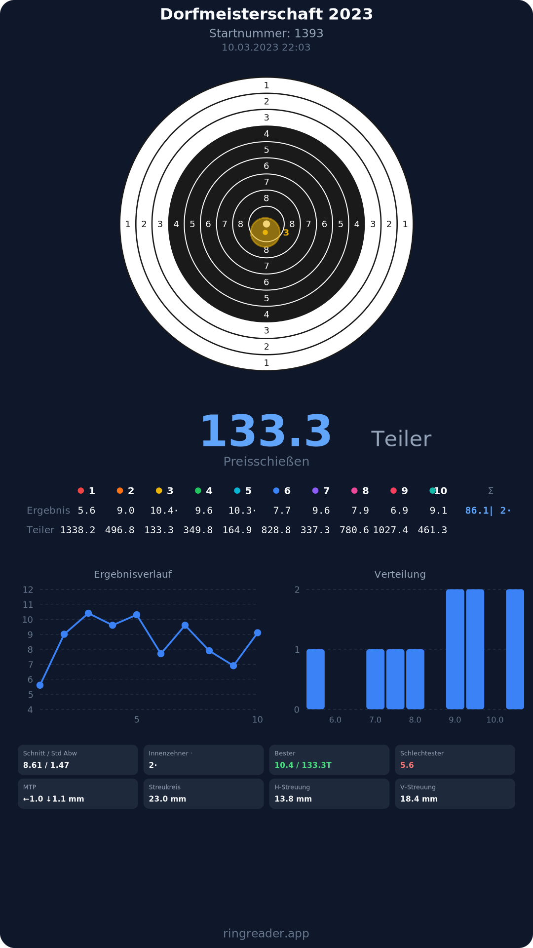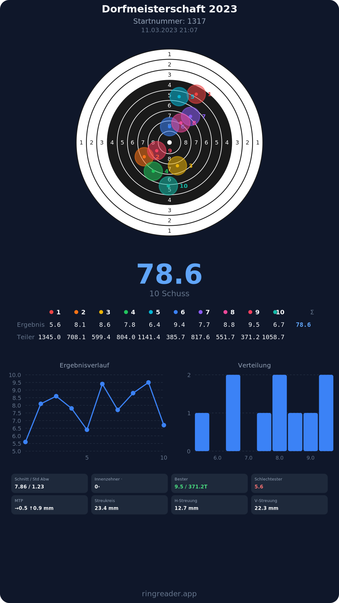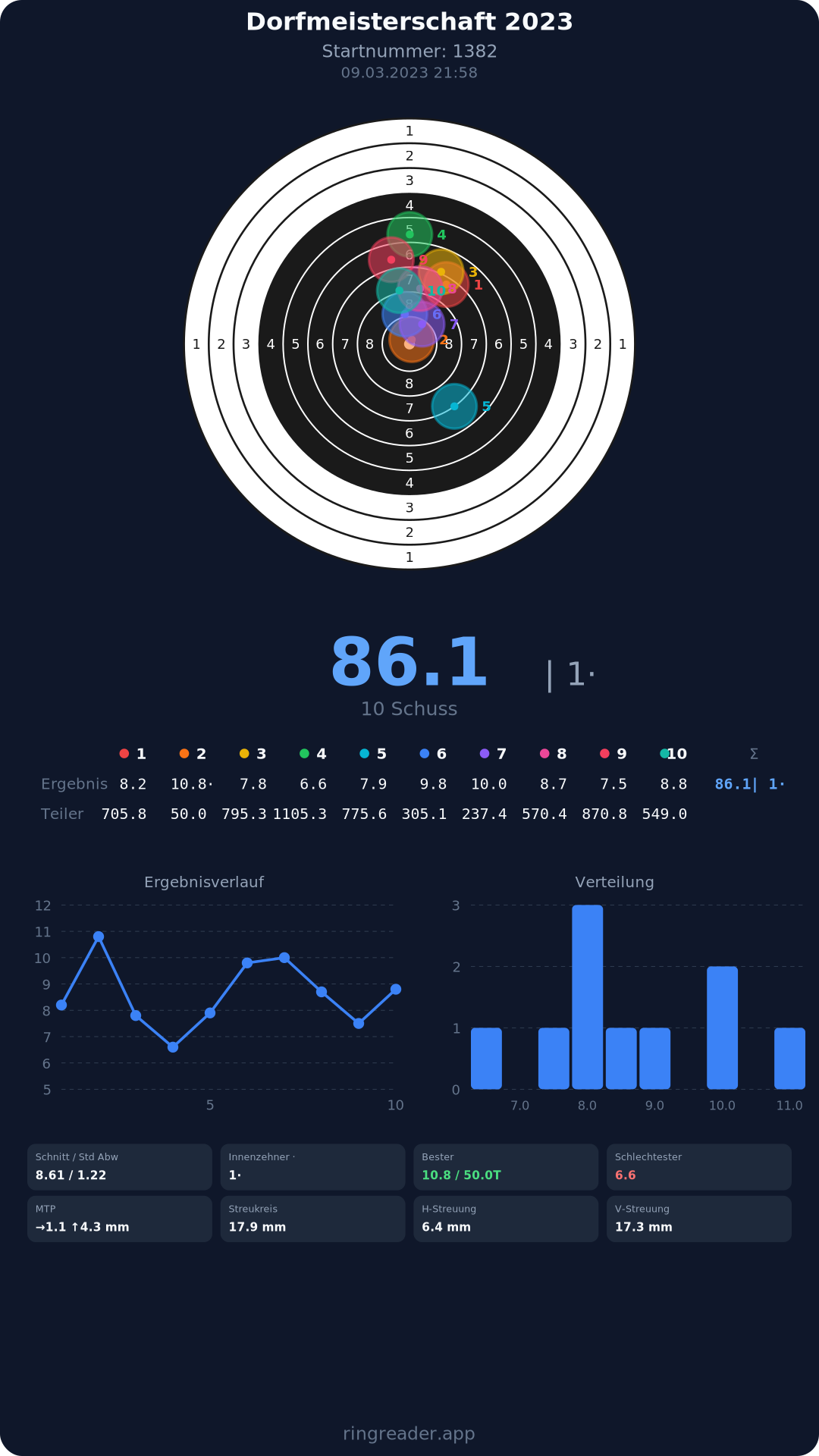 | 8 | 1371 | 86.3 Ringe |
