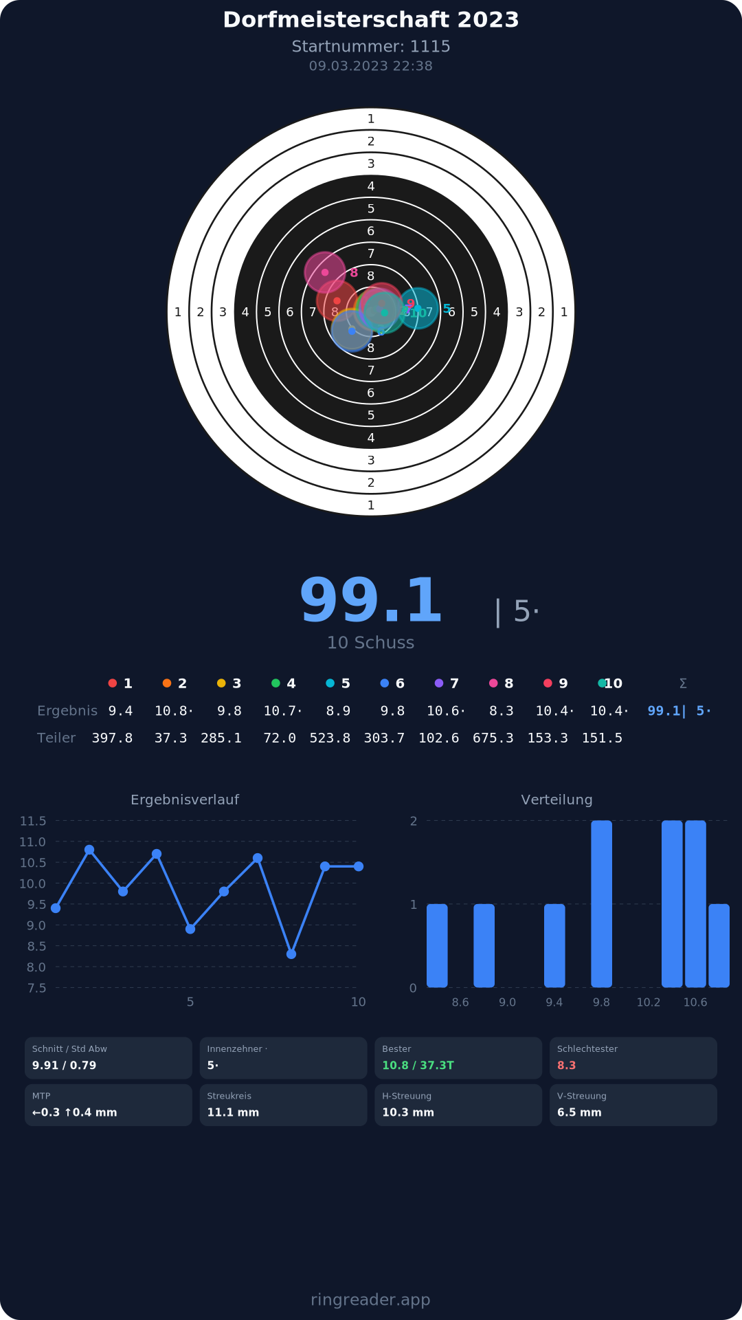 | 5 | 1115 | 99.1 Ringe |