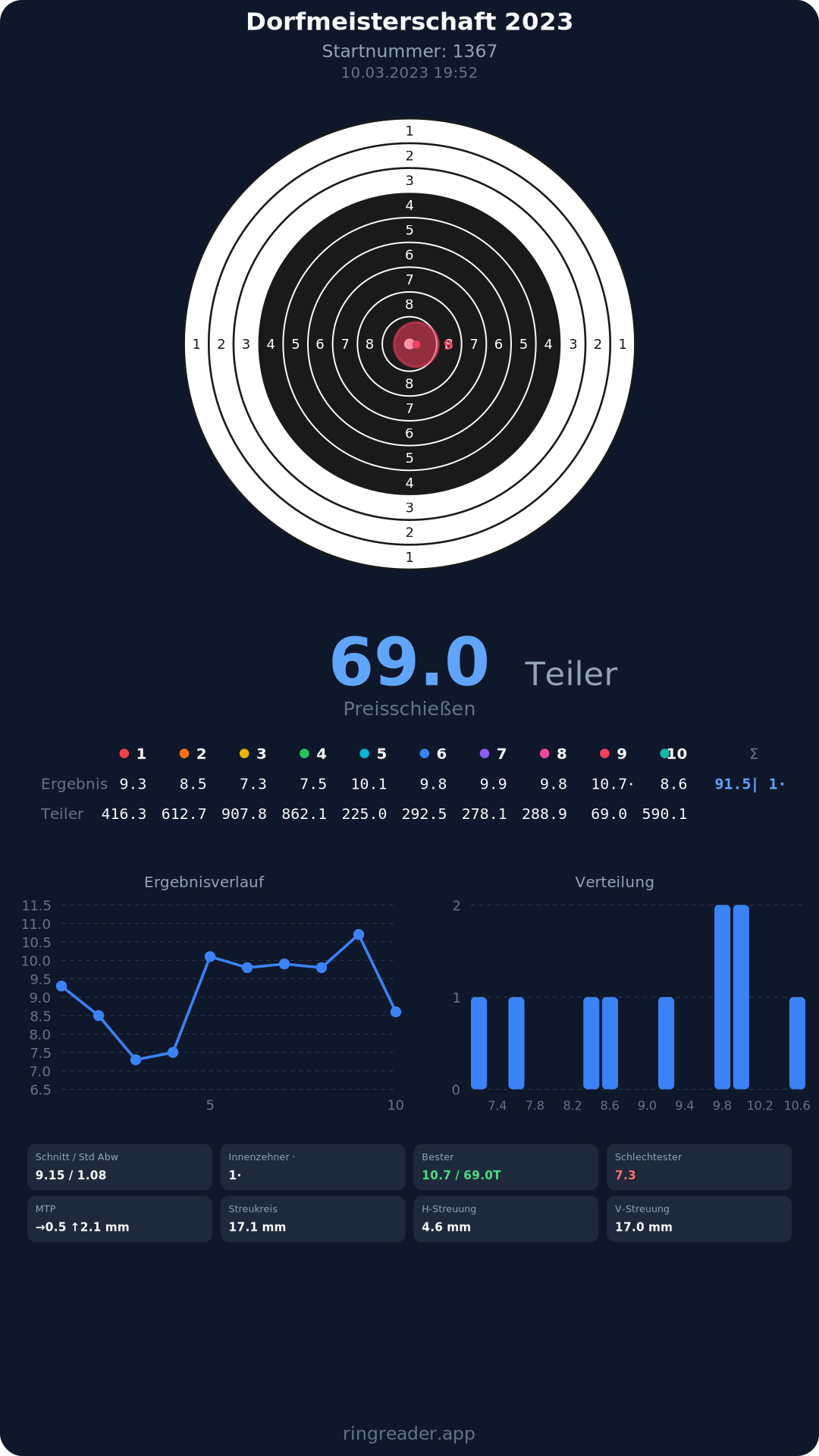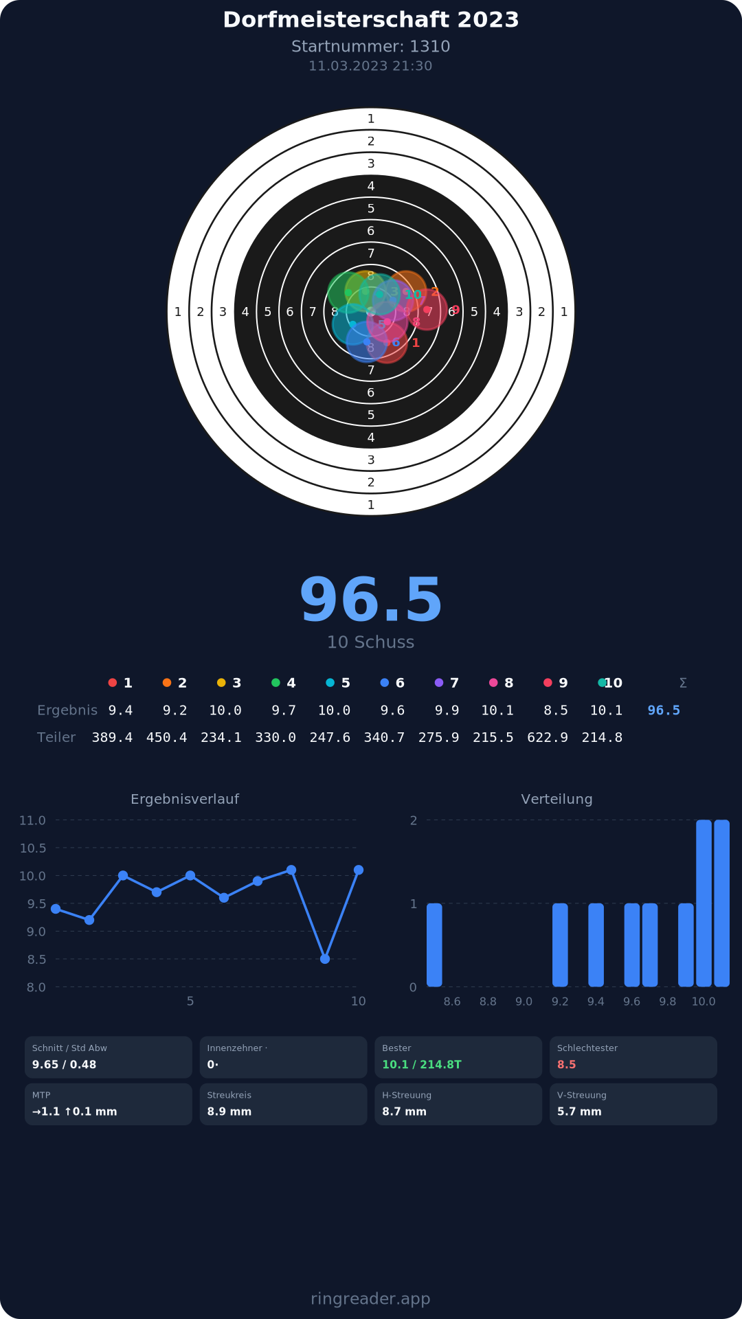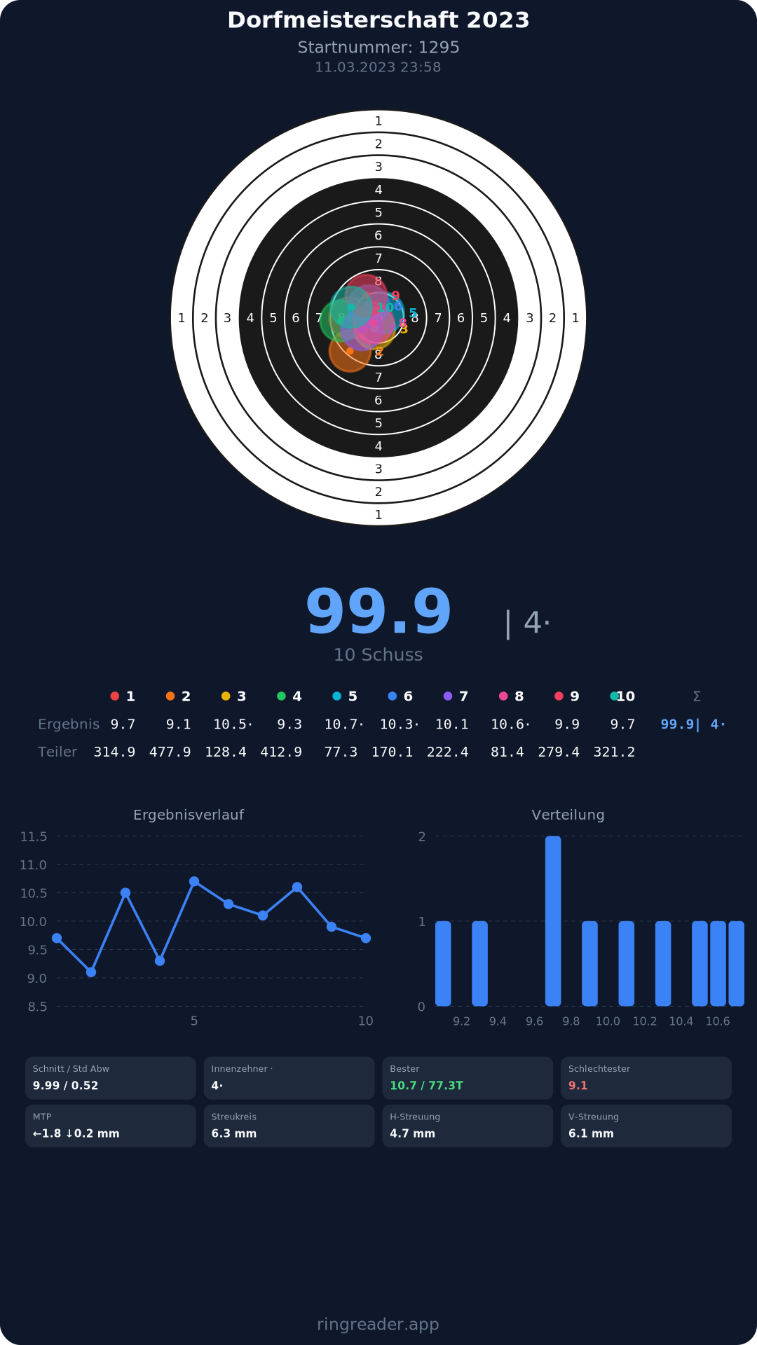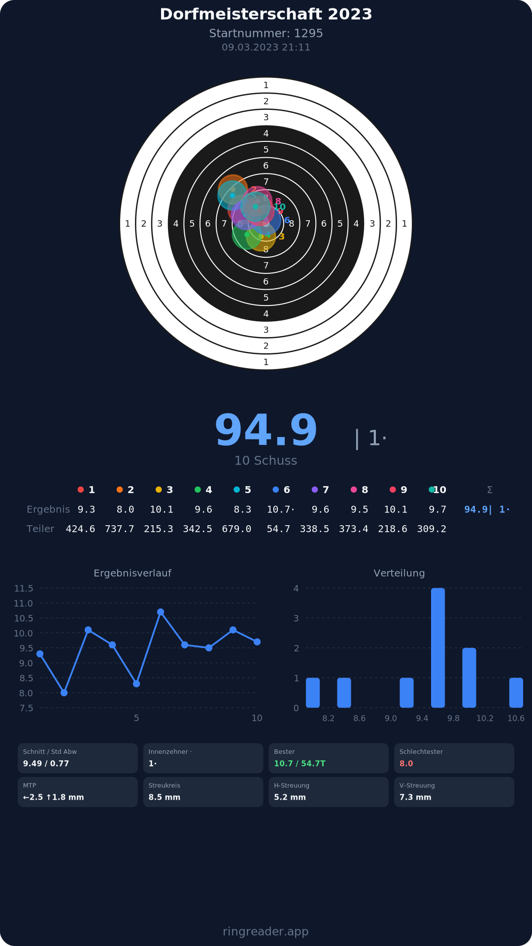 | 10 | 1295 | 94.9 Ringe |