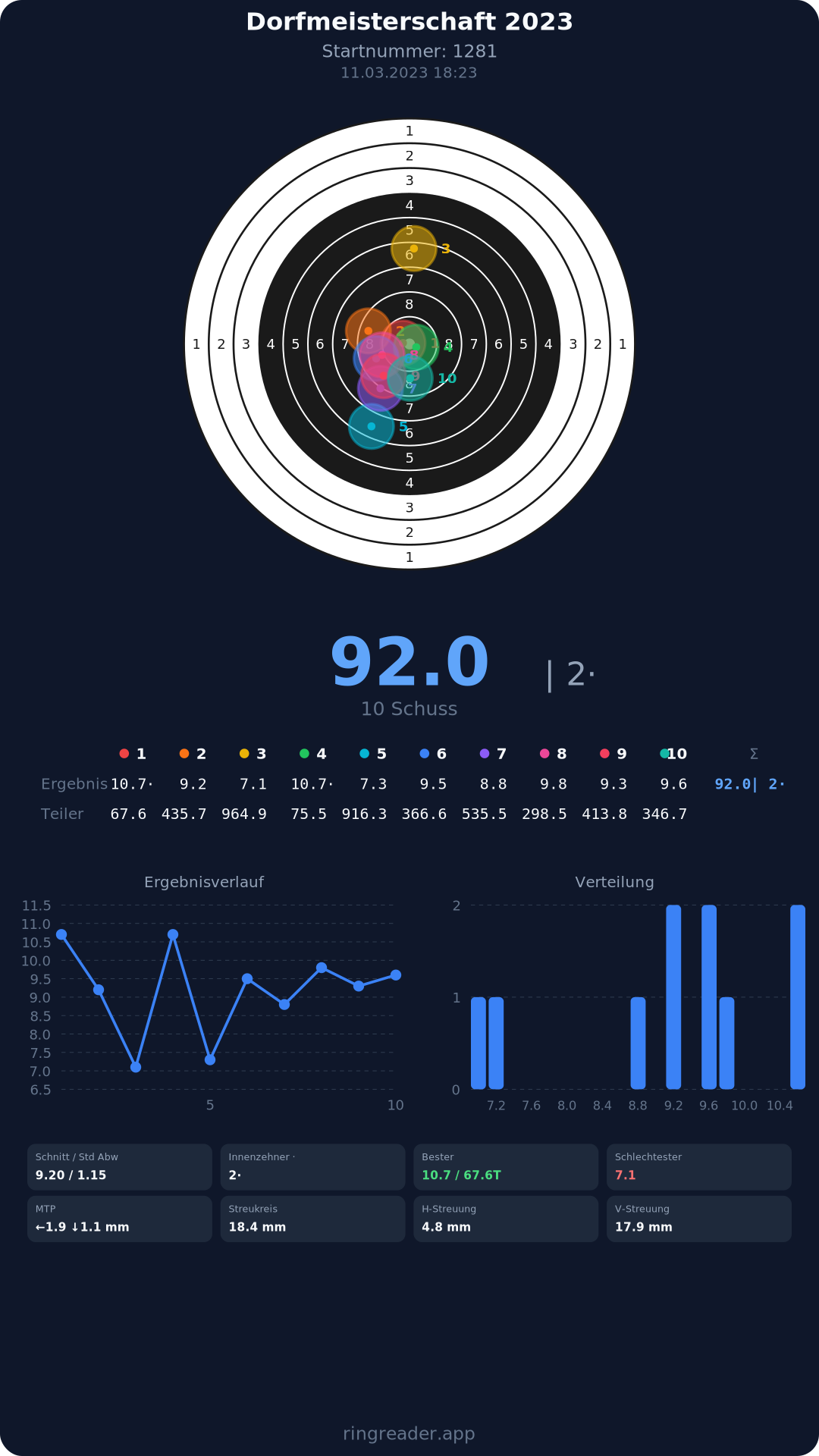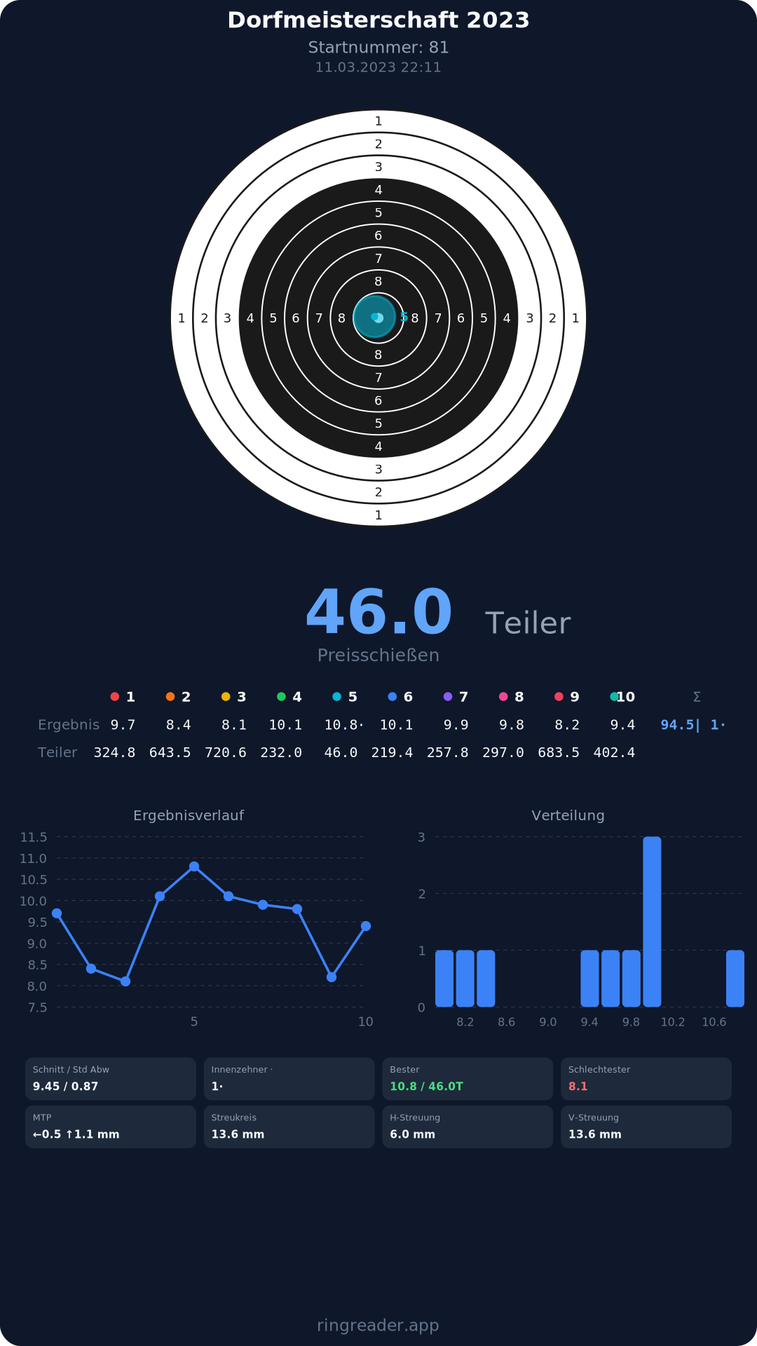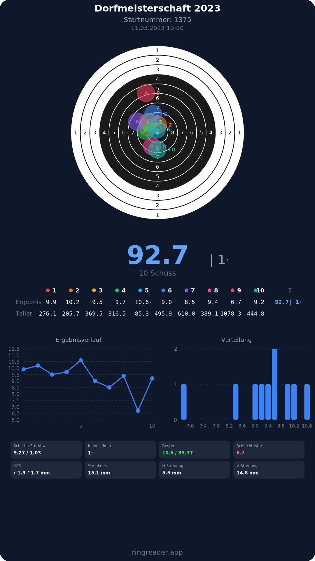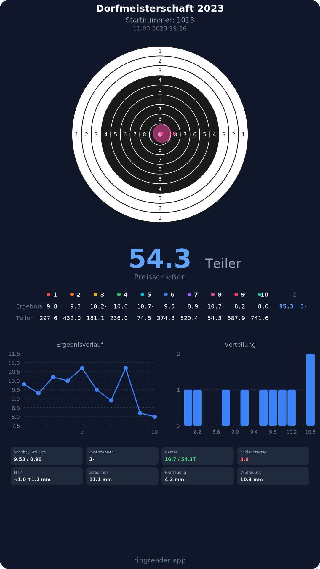| 10 | 1295 | 94.9 Ringe |