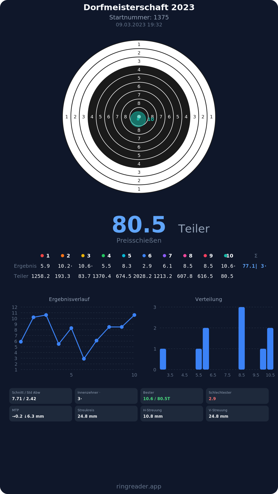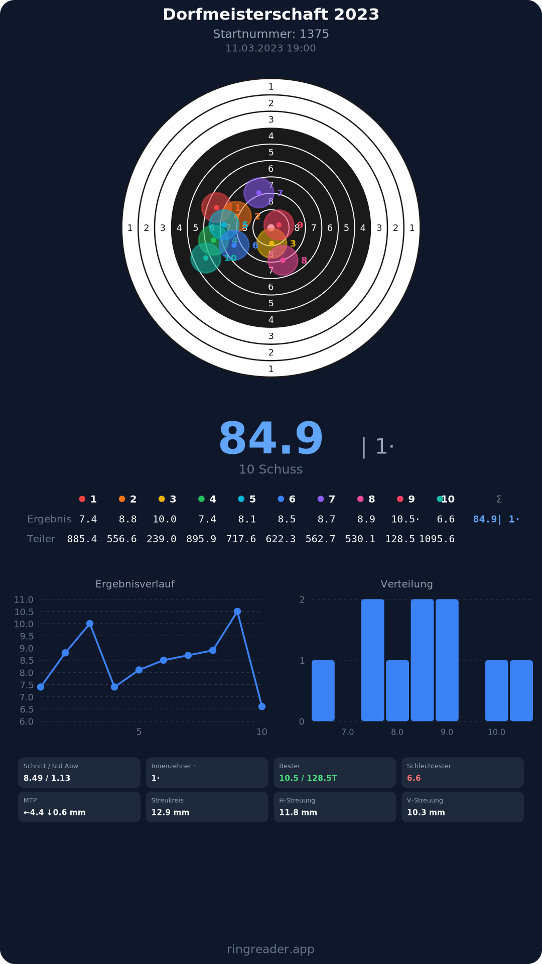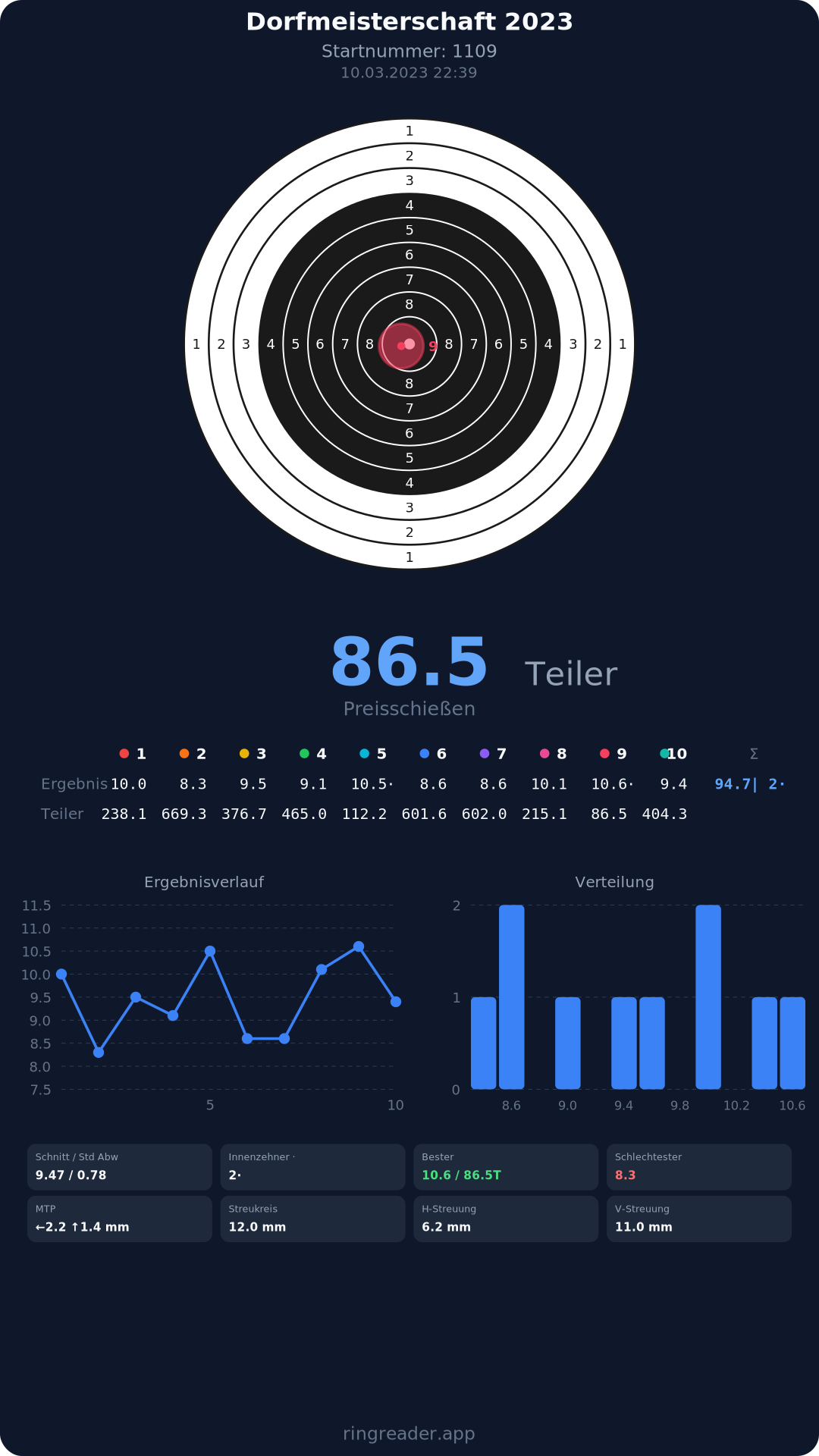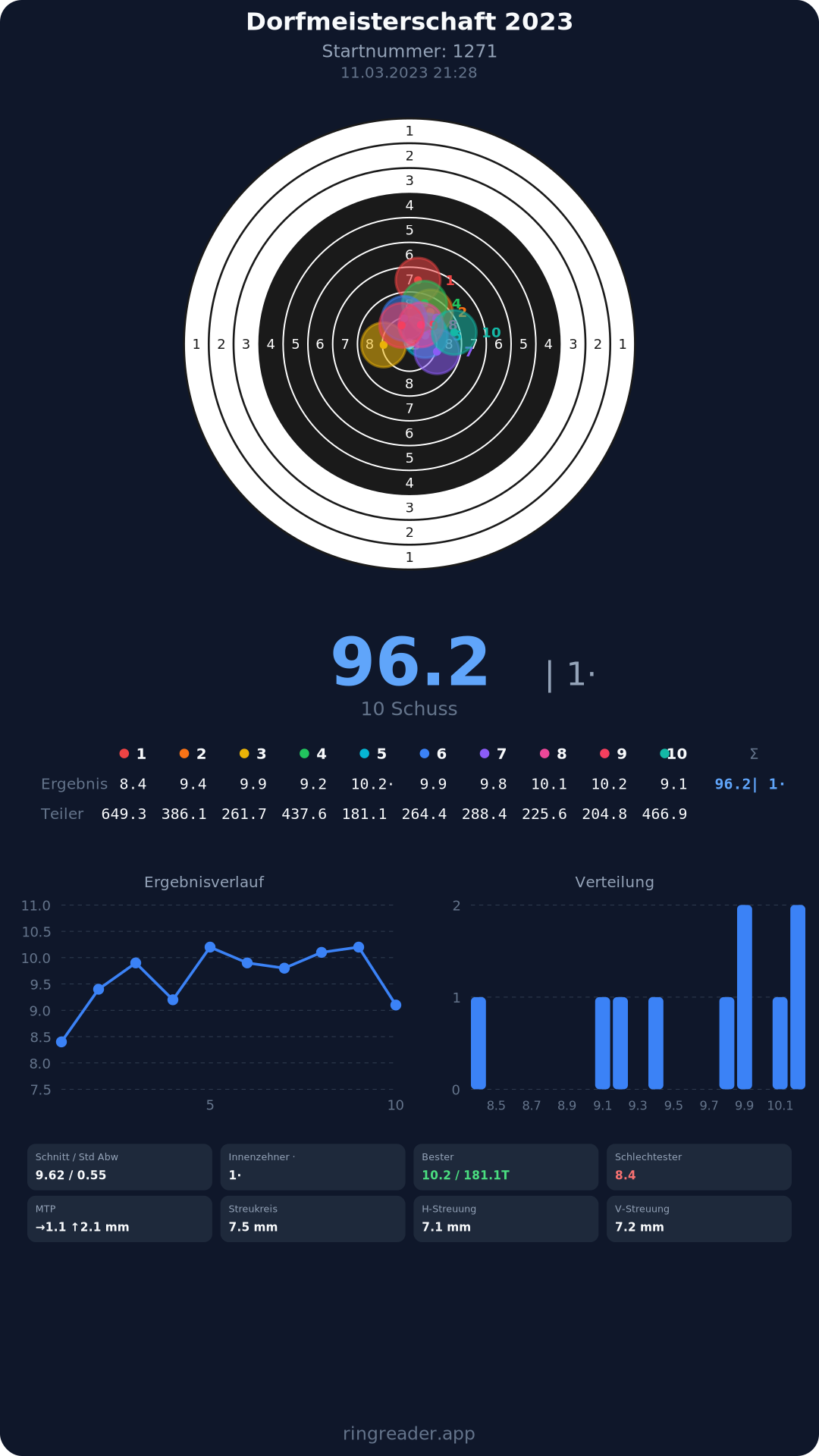 | 10 | 1295 | 94.9 Ringe |