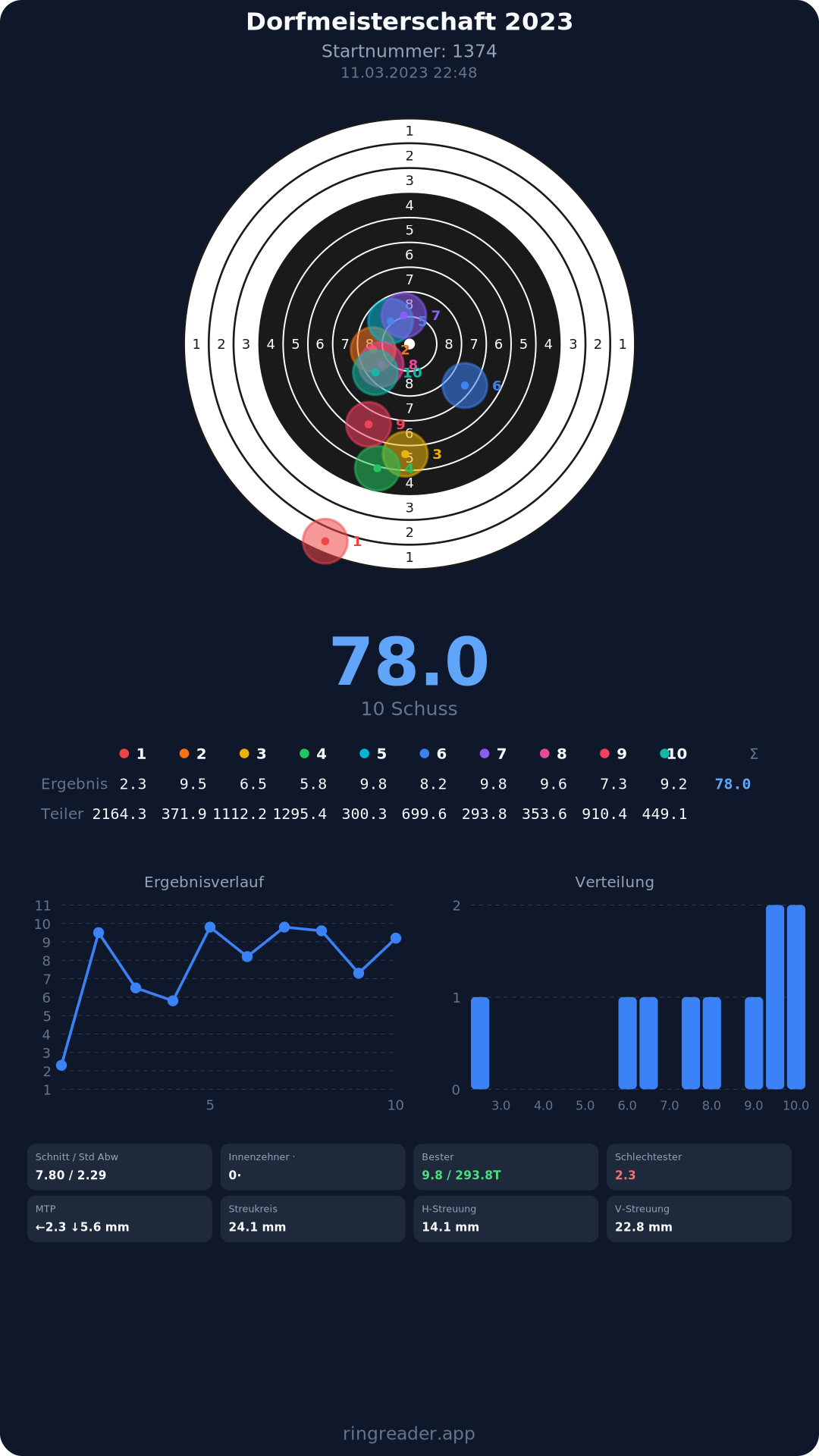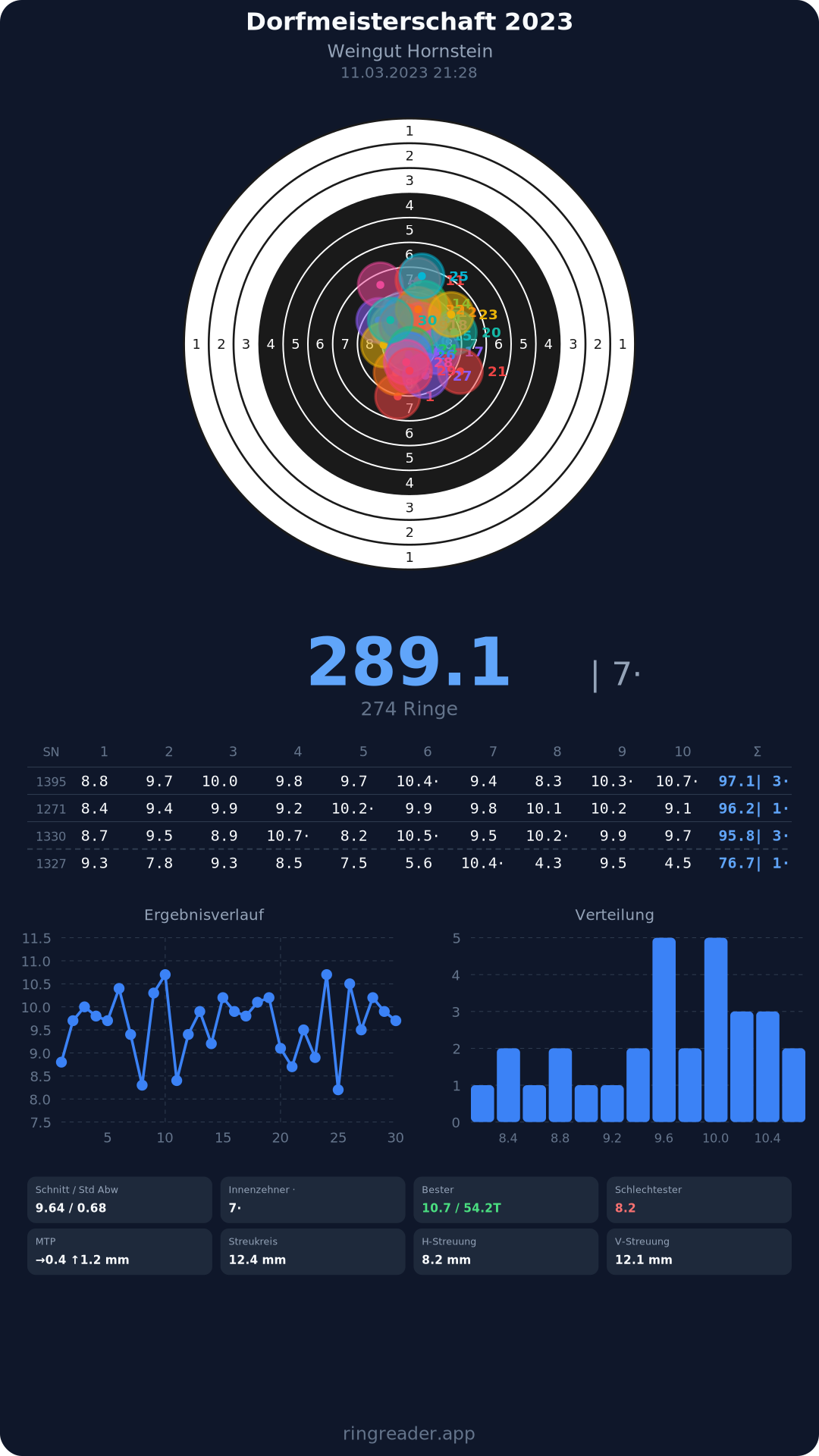 | 28 | 1374 | 78.0 Ringe |