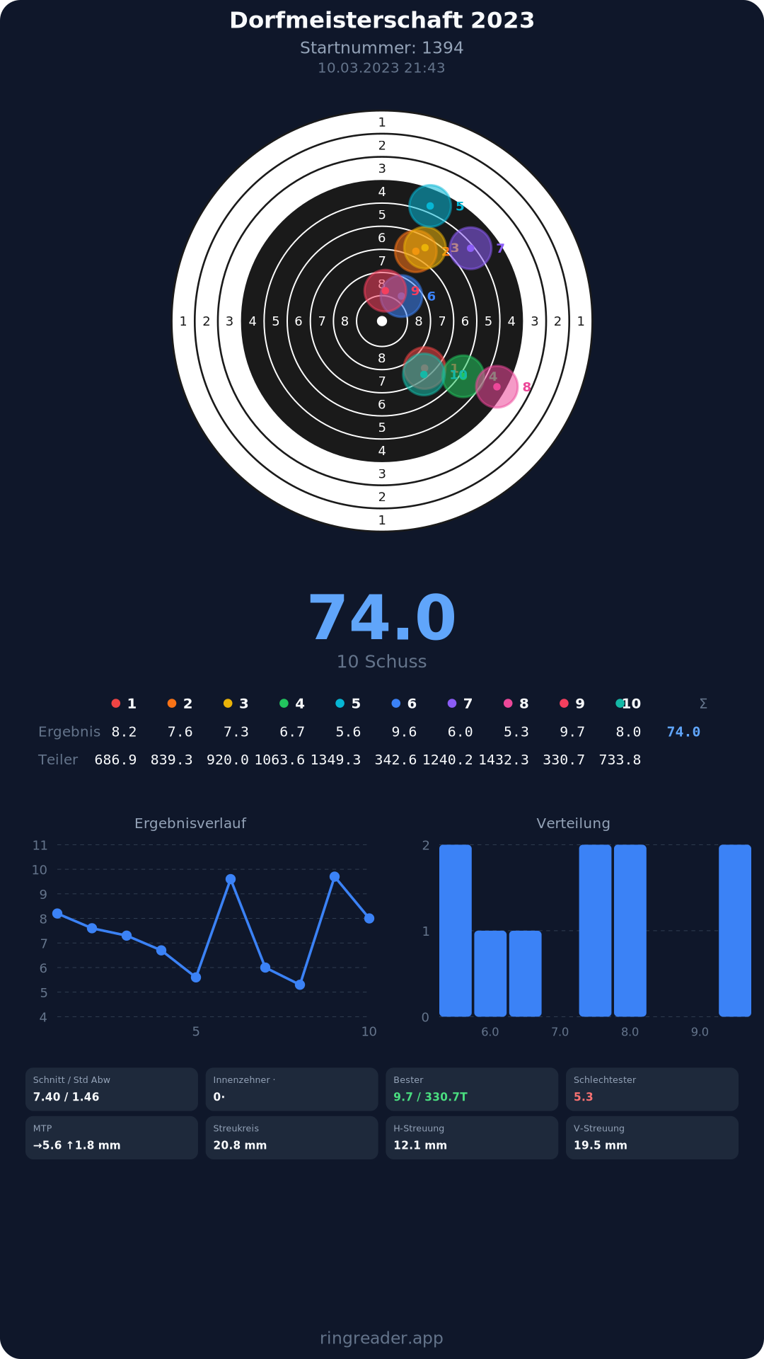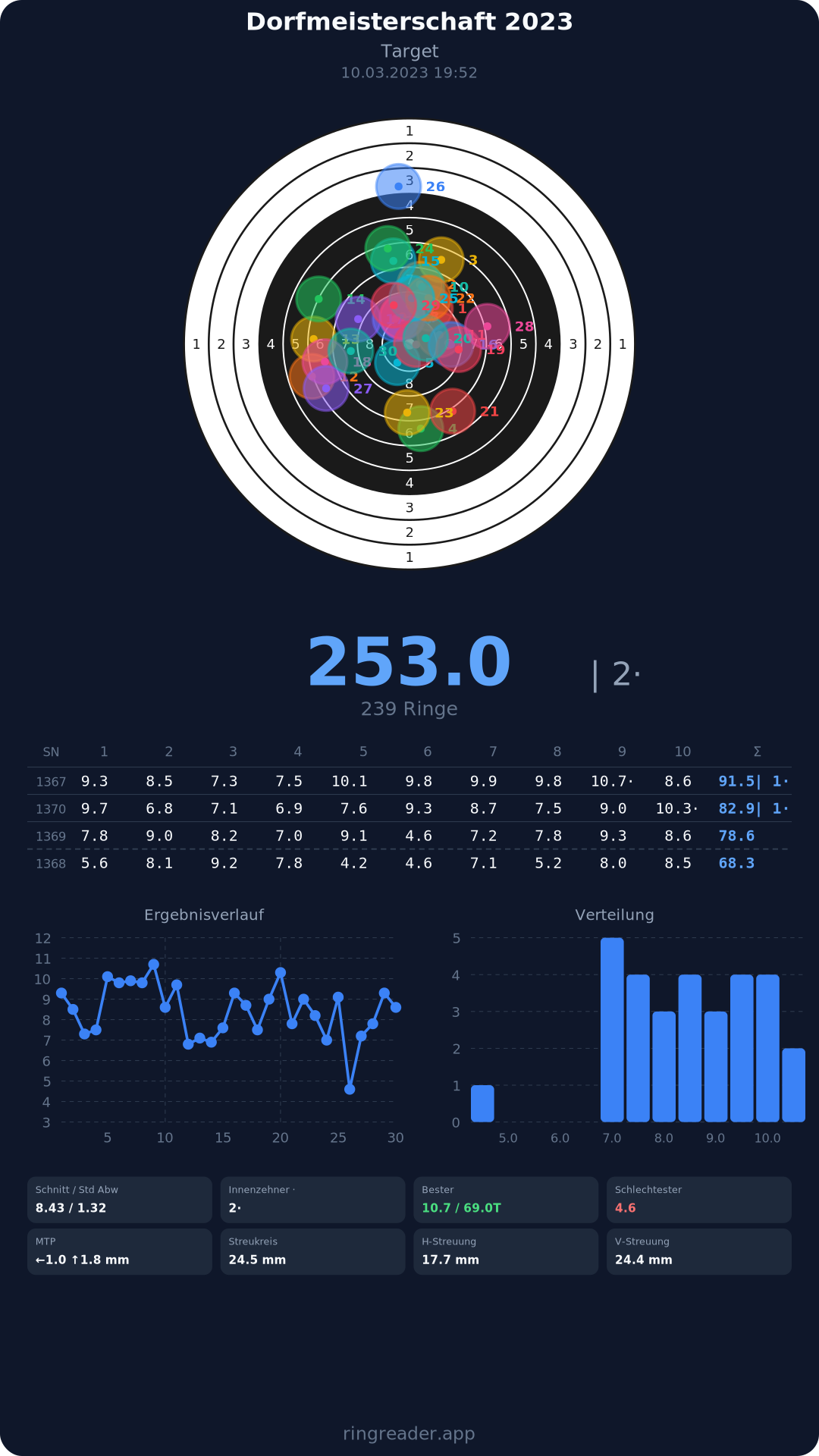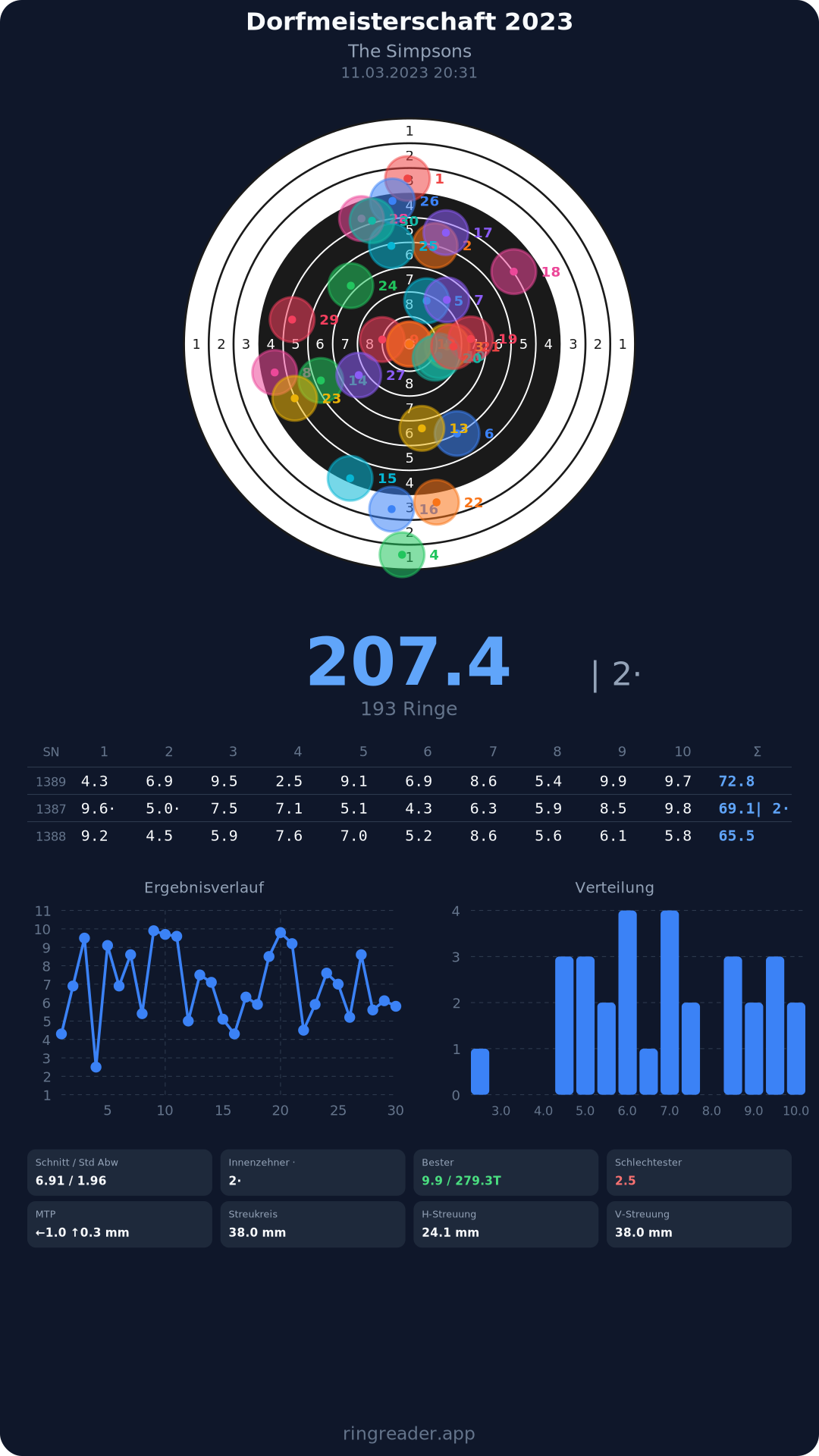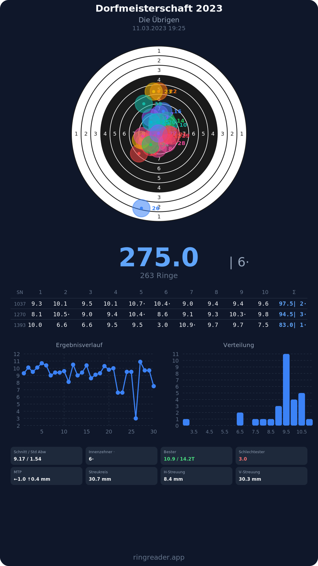 | 30 | 1394 | 74.0 Ringe |