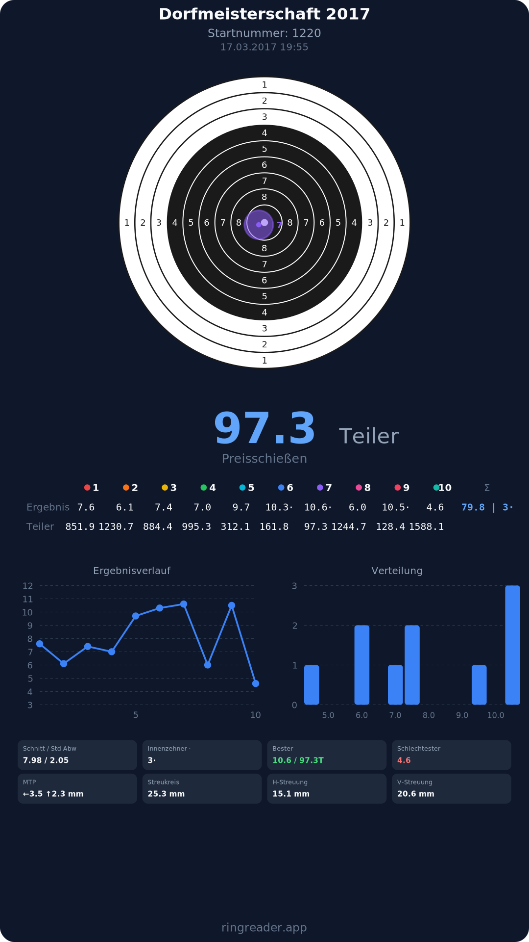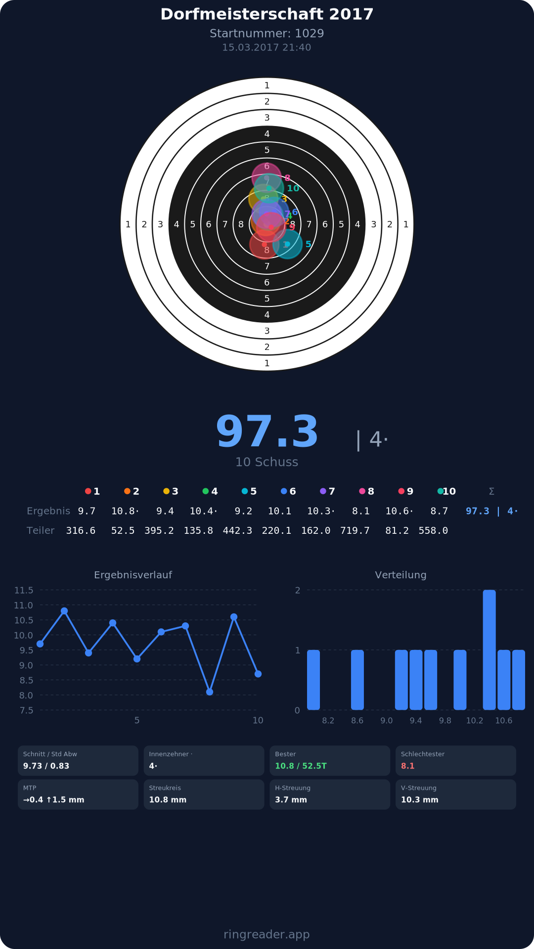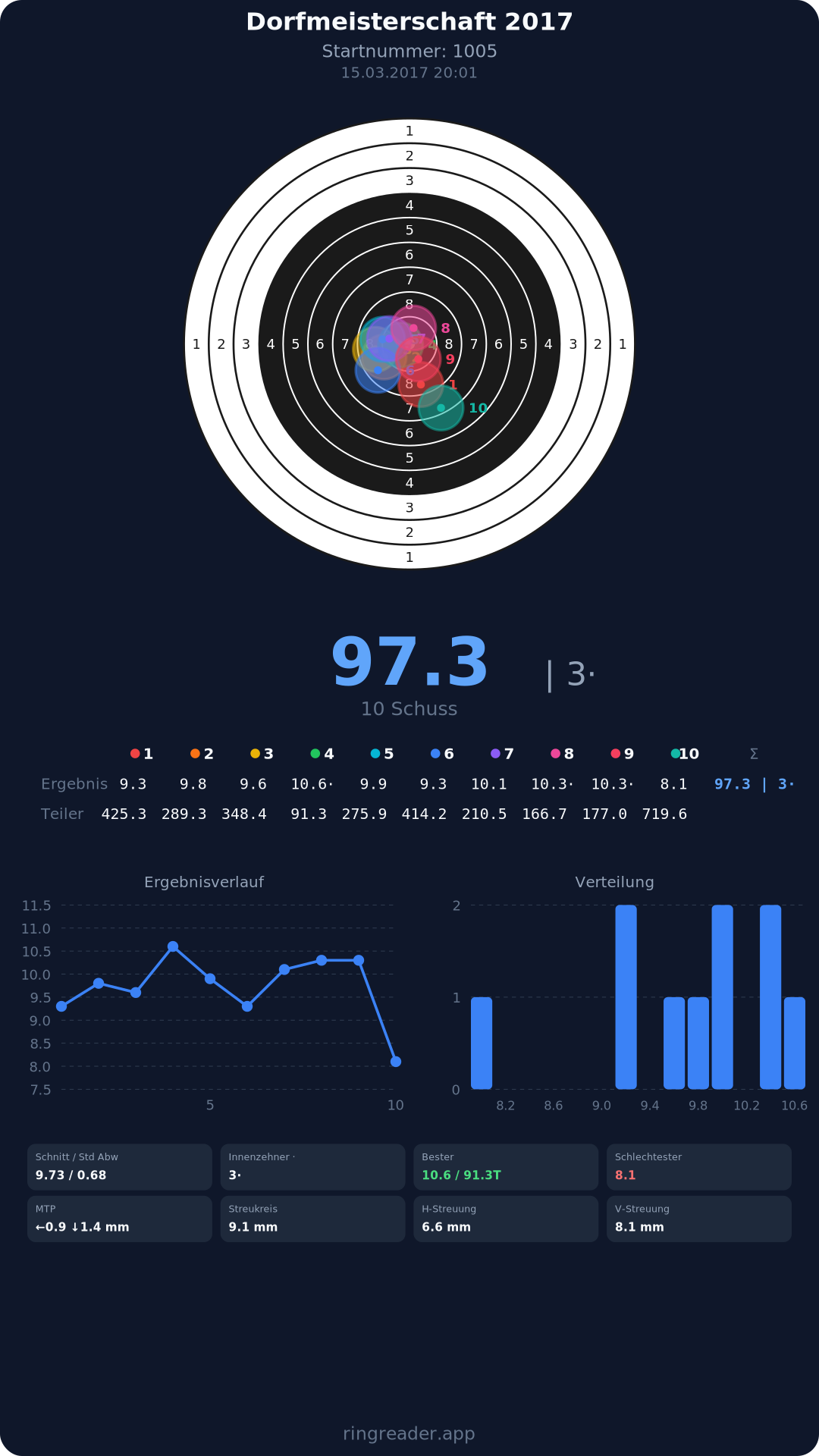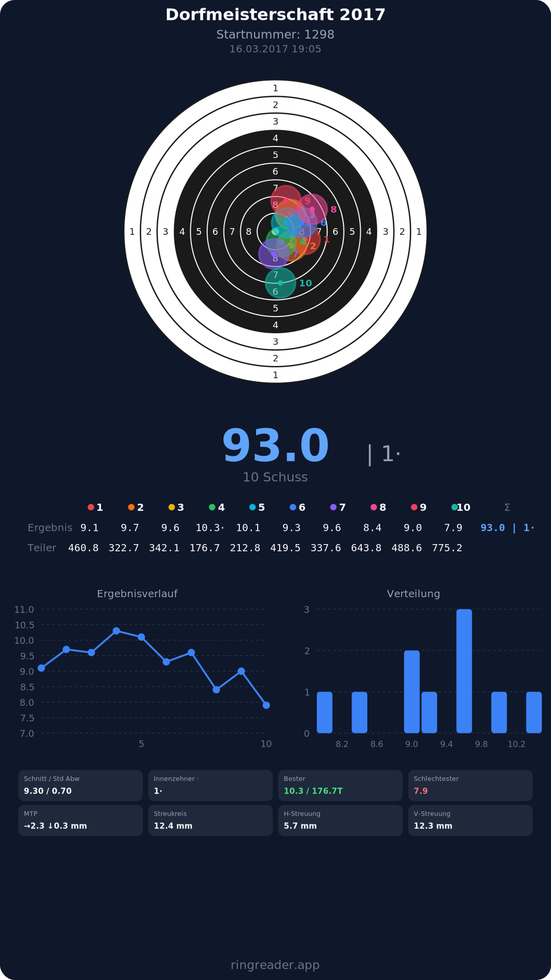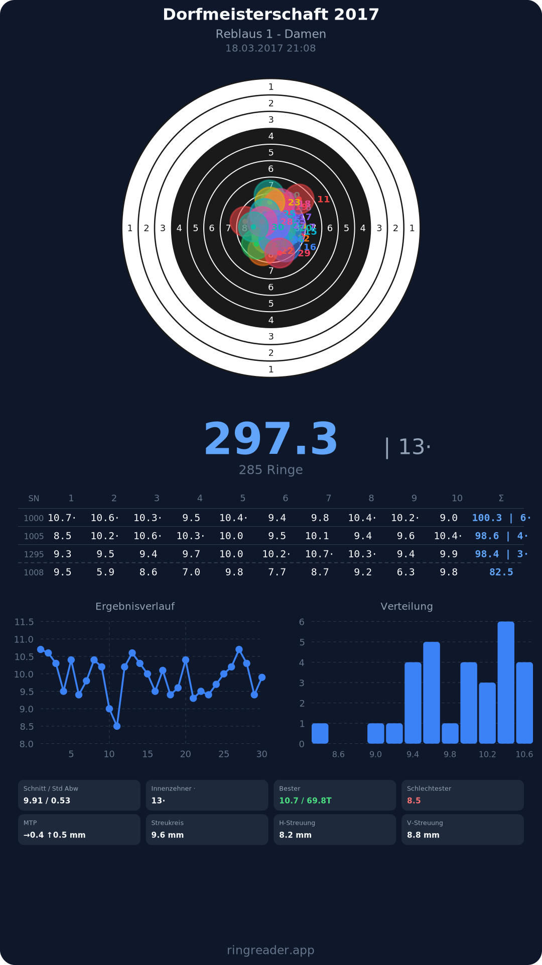 | 8 | Reblaus 1 - Damen | 2017 | 297.3 |