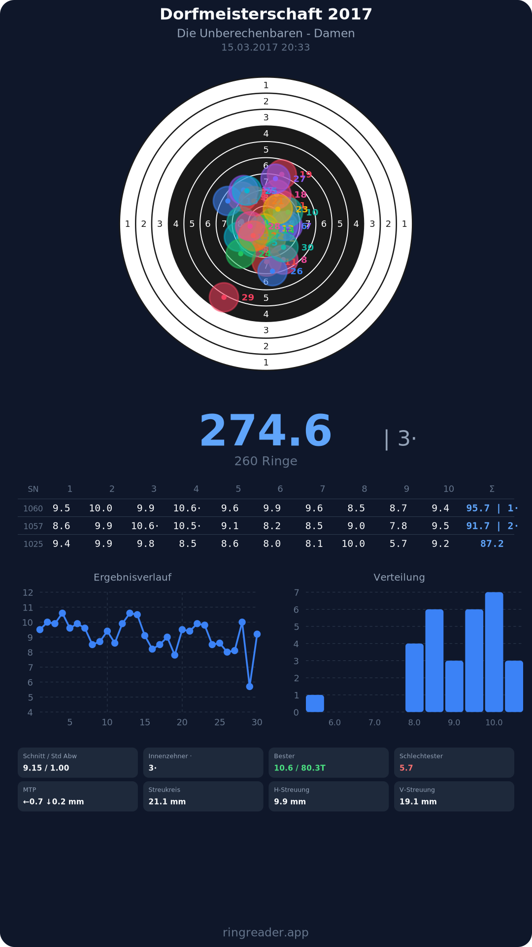 | 45 | Die Unberechenbaren - Damen | 2017 | 274.6 |