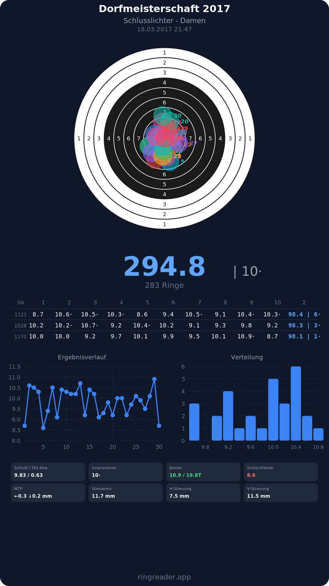 | 14 | Schlusslichter - Damen | 2017 | 294.8 |