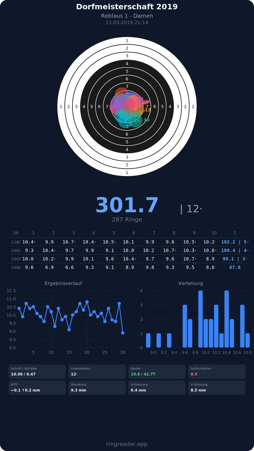 | 1 | Reblaus 1 - Damen | 2019 | 301.7 |