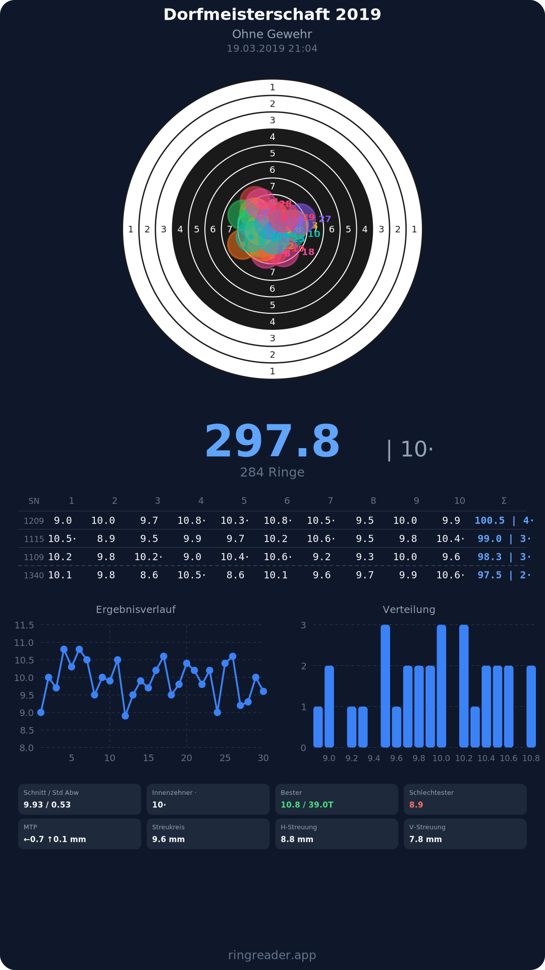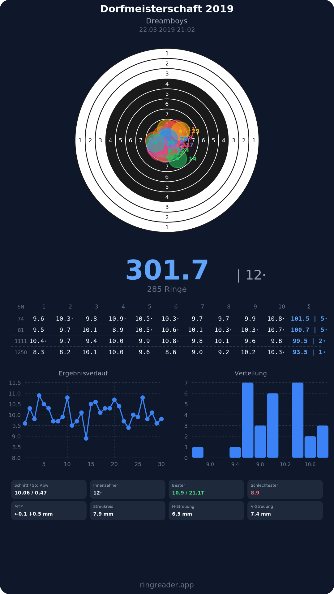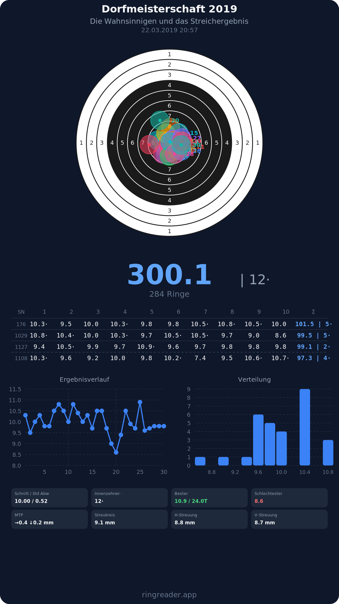 | 12 | Schlusslichter - Damen | 2019 | 295.7 |
