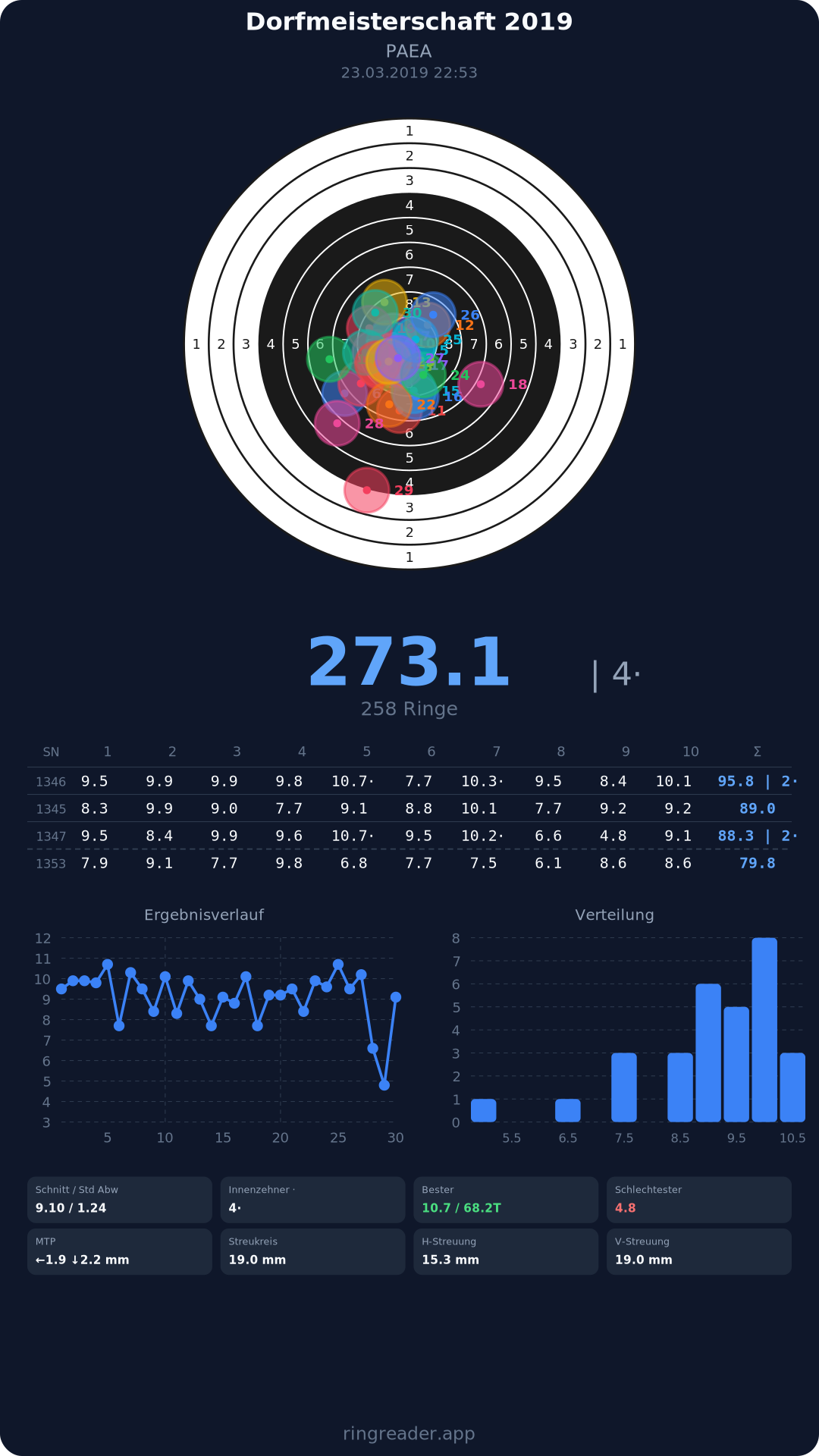 | 23 | Landjugend Wasserburg | 2019 | 291.9 |